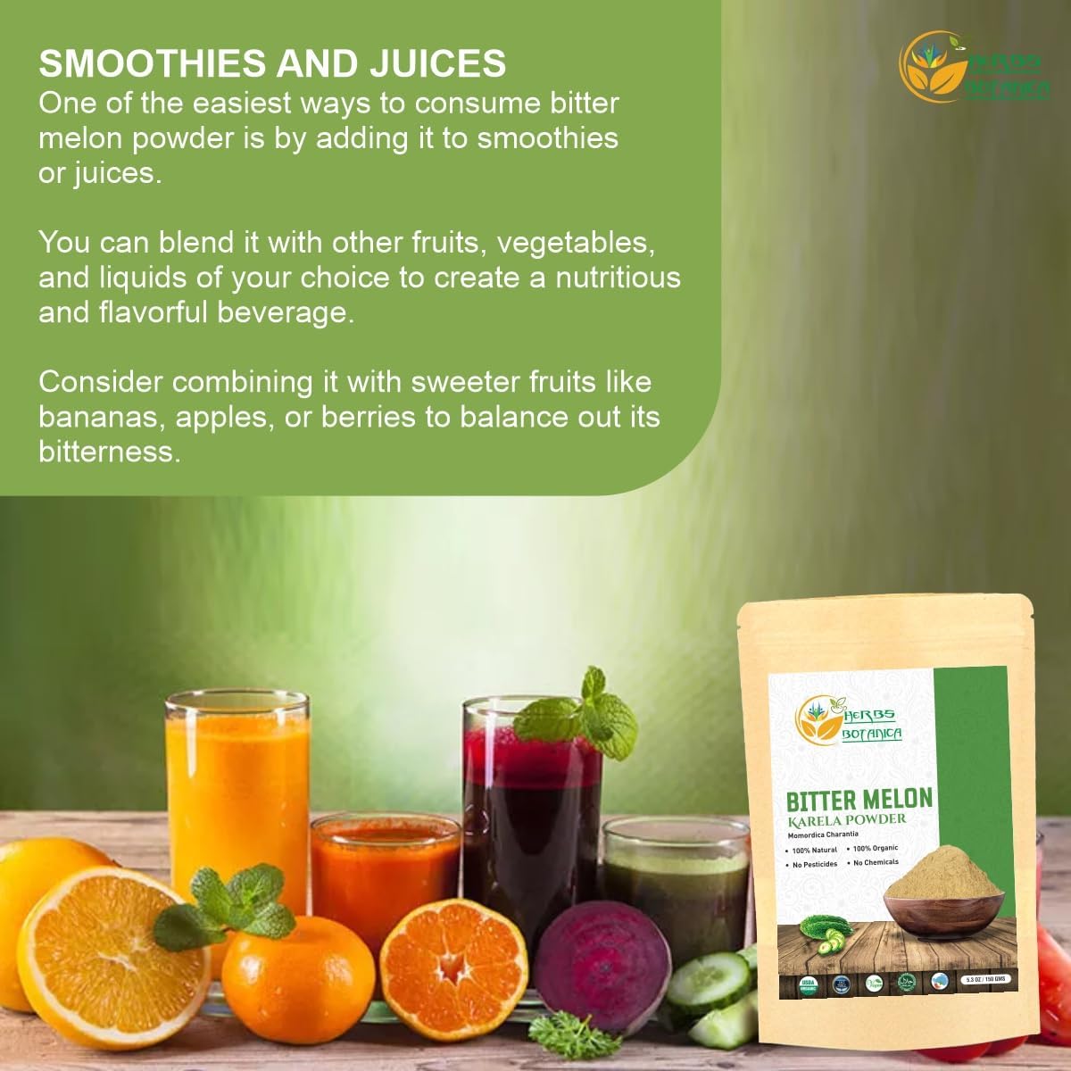 Skin and hair health: The vitamin A, vitamin C, Biotin, and Zinc present in Bitter Melon promote glowing skin and lustrous hair.