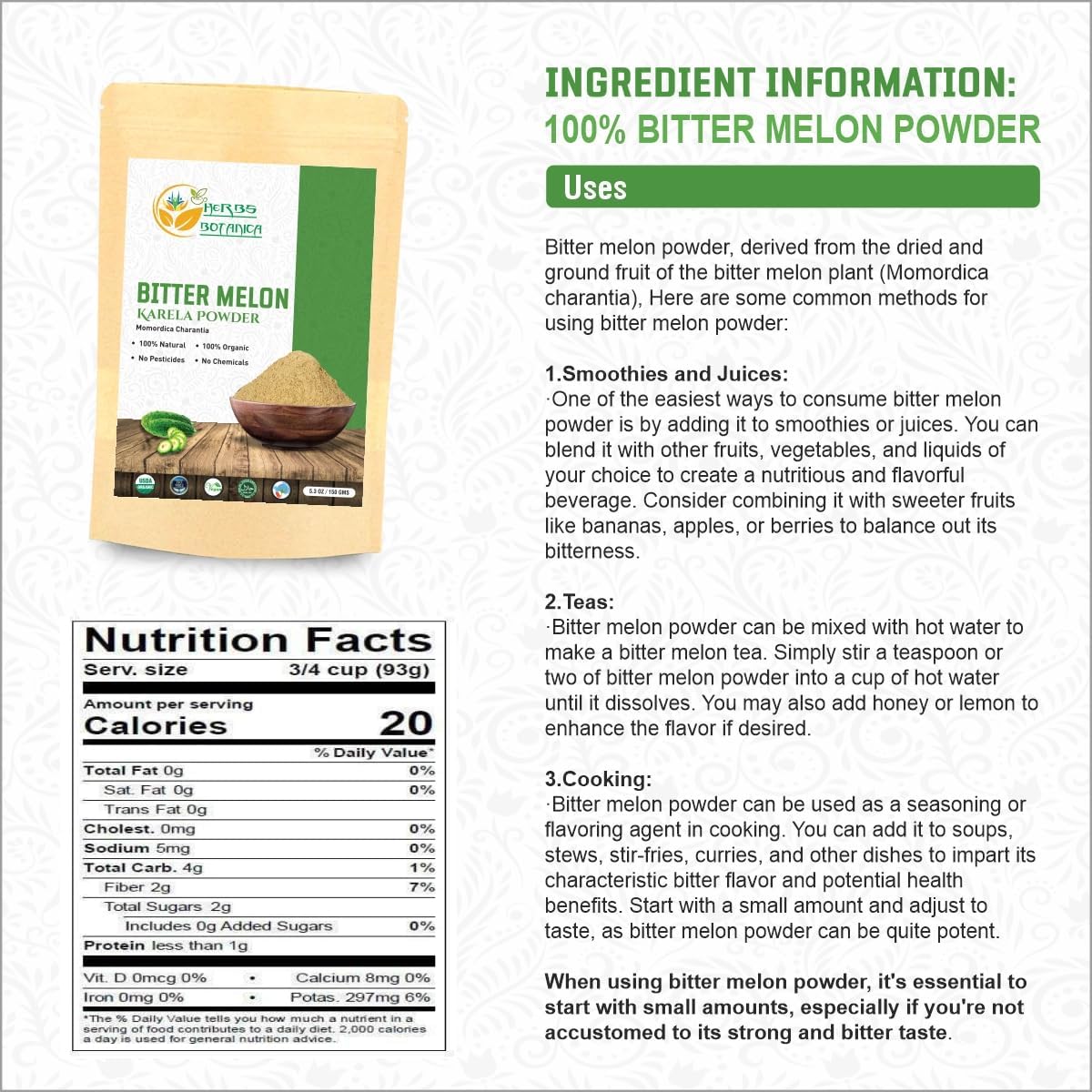 Digestive care: Bitter Gourd/Bitter Melon/Momordica Charantia is full of fiber and helps improve bowel movement. It relieves constipation and settles the stomach.
