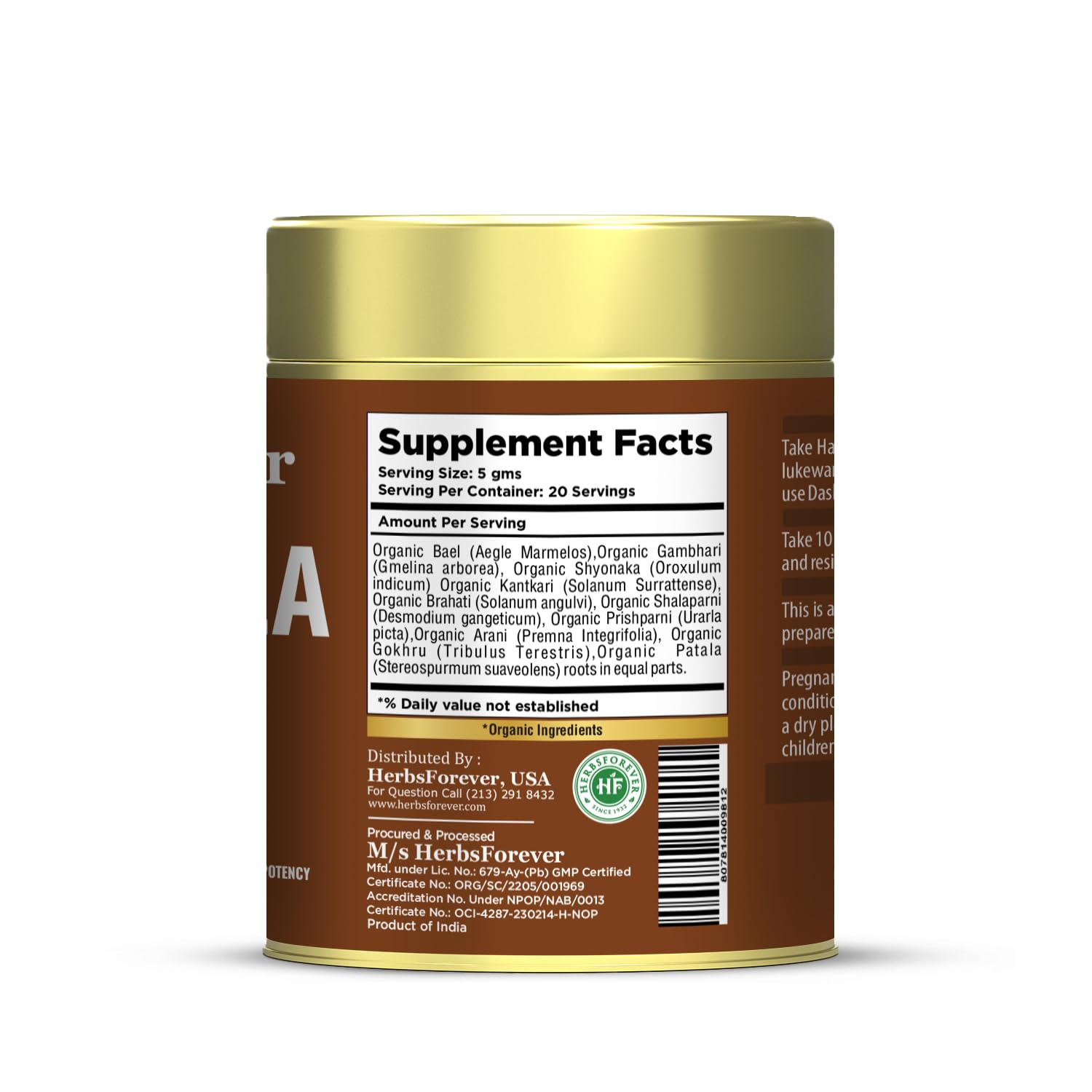 Caffeine-Free and All-Natural: Dashamula Tea is caffeine-free and made with all-natural ingredients, ensuring a gentle and safe option for daily consumption.