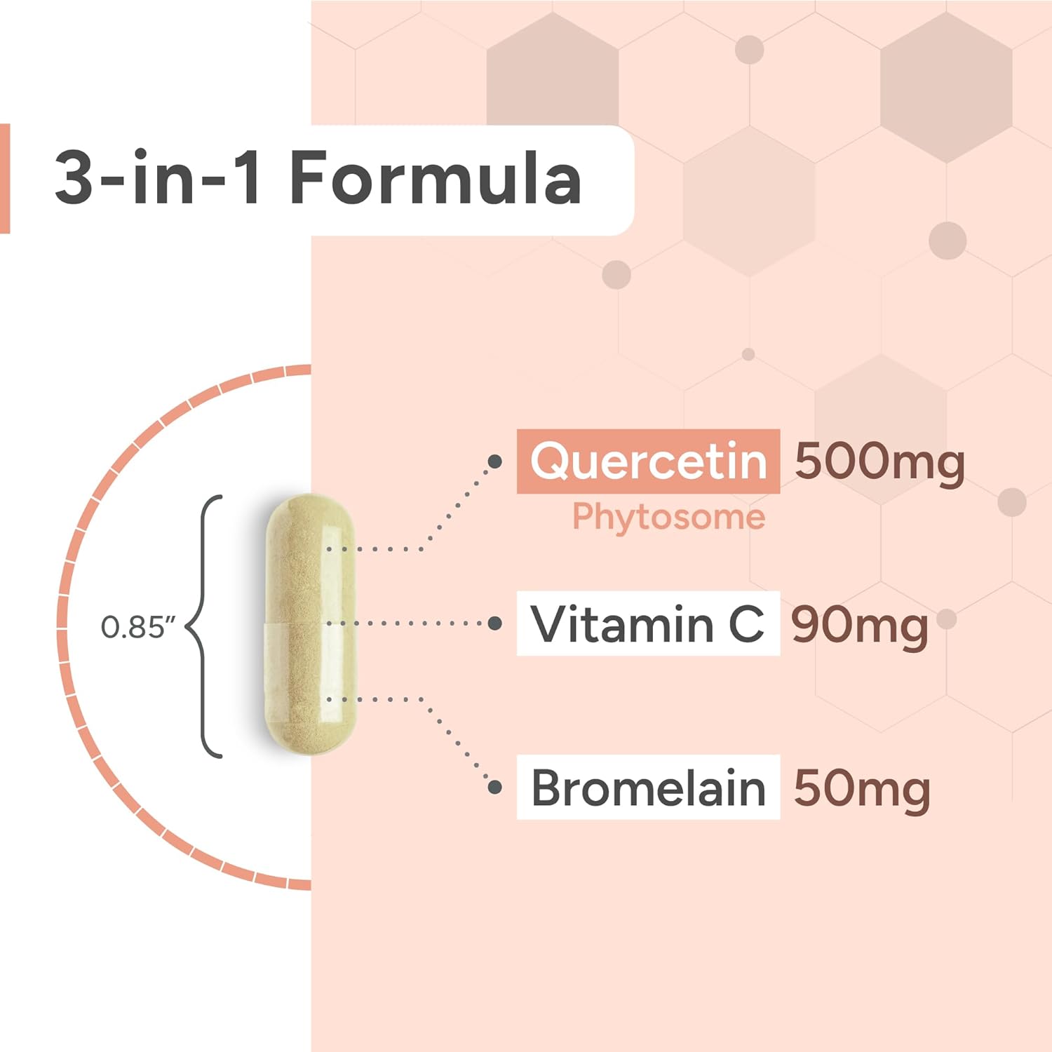 VITAMIN C & BROMELAIN ANTIOXIDANTS – High Absorption Quercetin has just the right amount of everything. Vitamin C with the enzyme Bromelain are cofactor antioxidants are added to help enhance the effectiveness, absorption, and utilization of Quercetin within the body.*