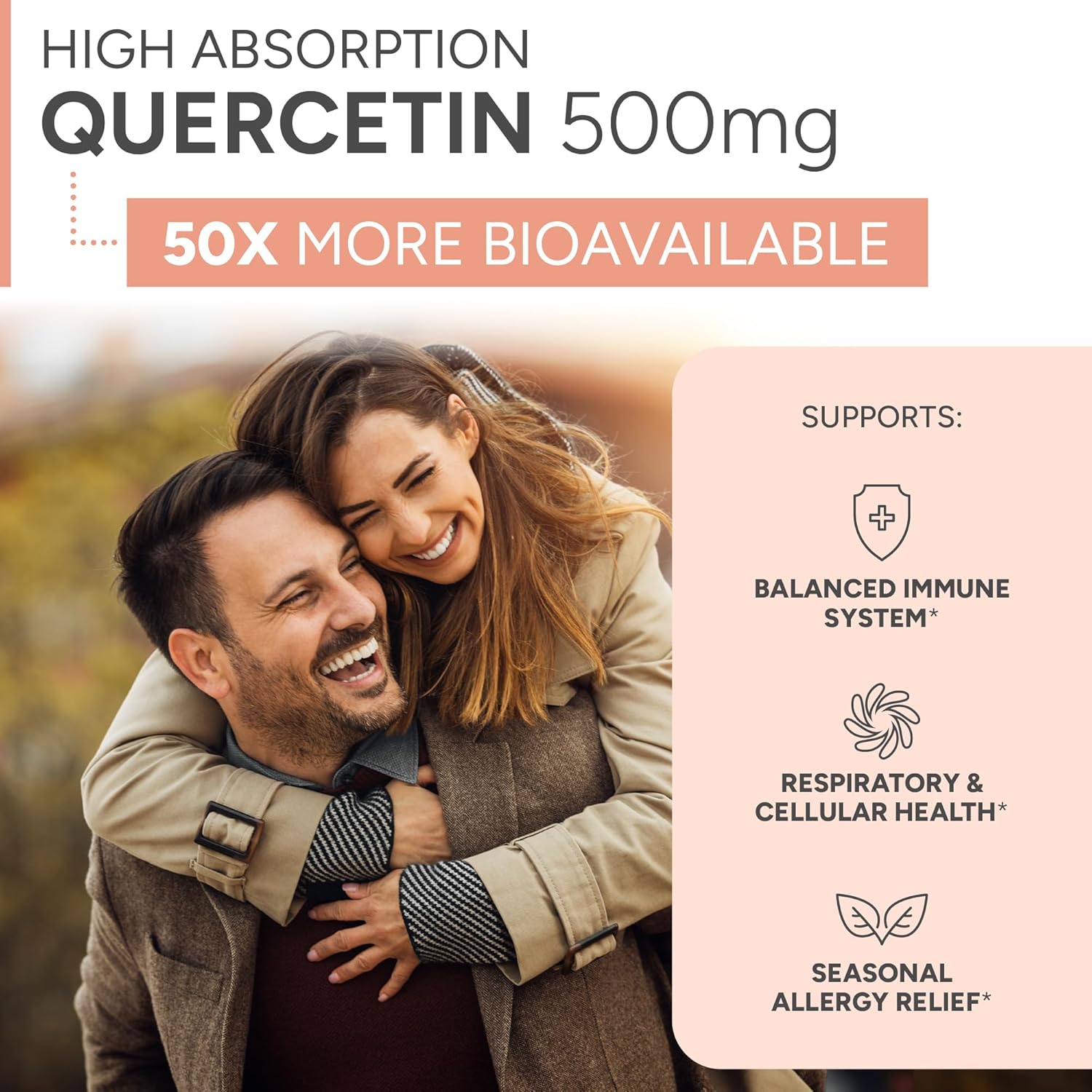 50X BETTER ABSORPTION QUERCETIN – MOST EFFECTIVE FORM OF QUERCETIN: Our clinically studied High Absorption Quercetin has shown 50X more absorption and bioavailability versus the standard over-the-counter quercetin.*
