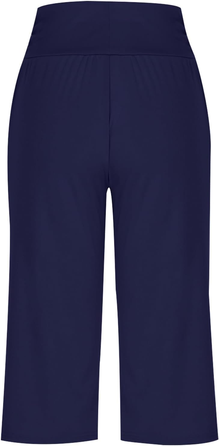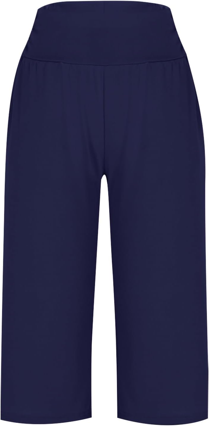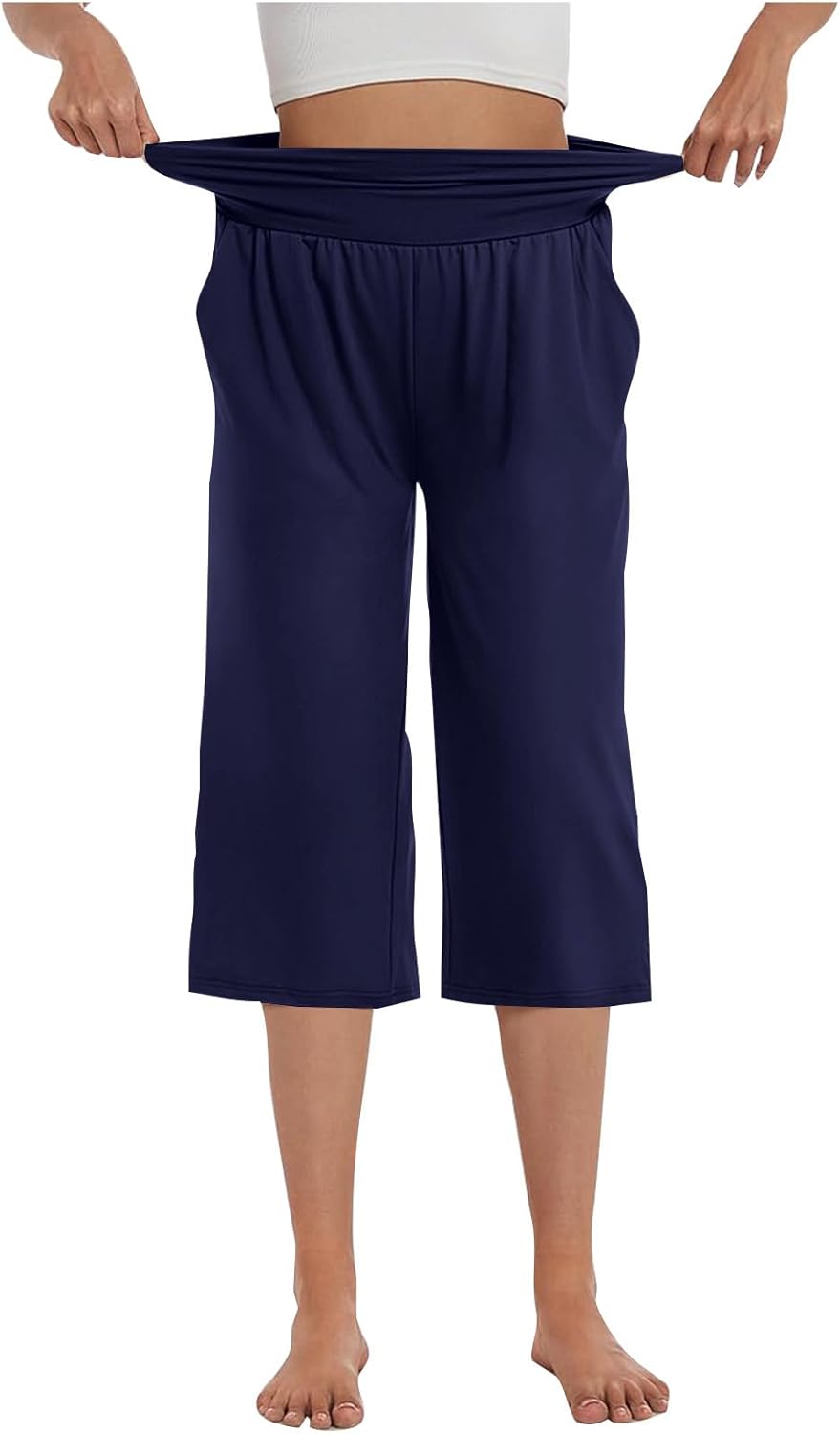High Waist Wide Leg Yoga Pants for Women Trendy Solid Loose Comfy Capri Lounge Pant Tummy Control Yoga Capris