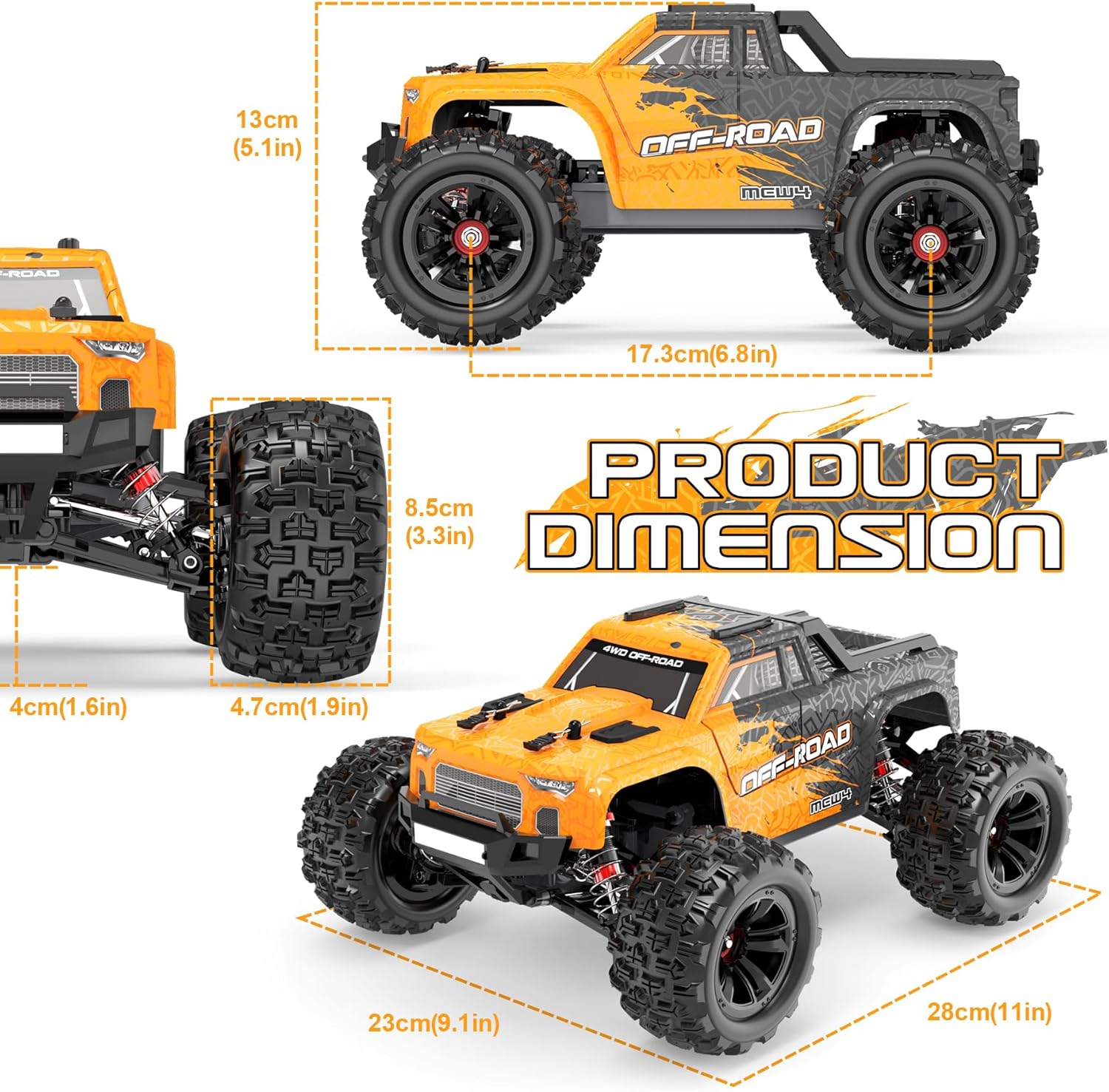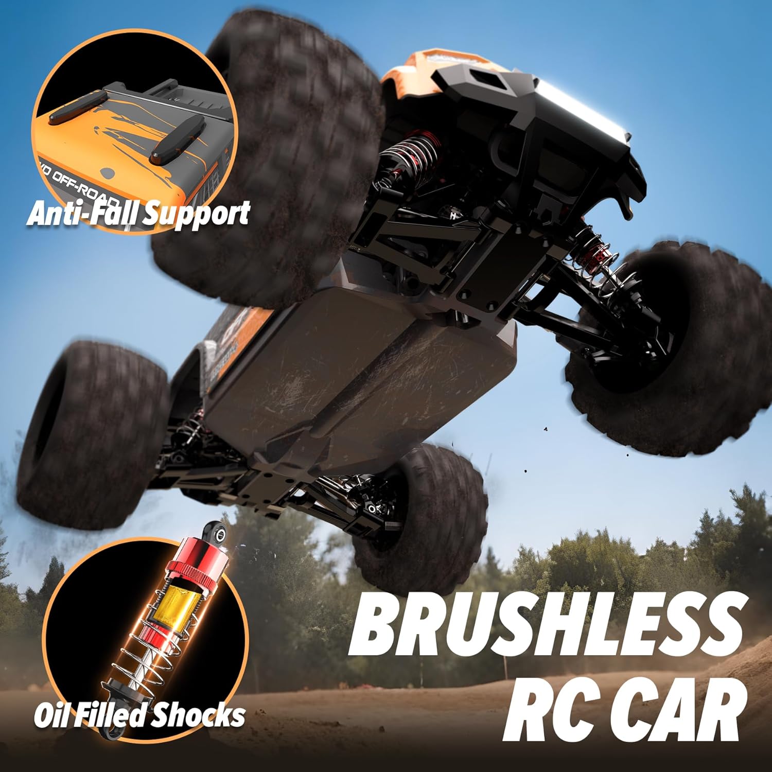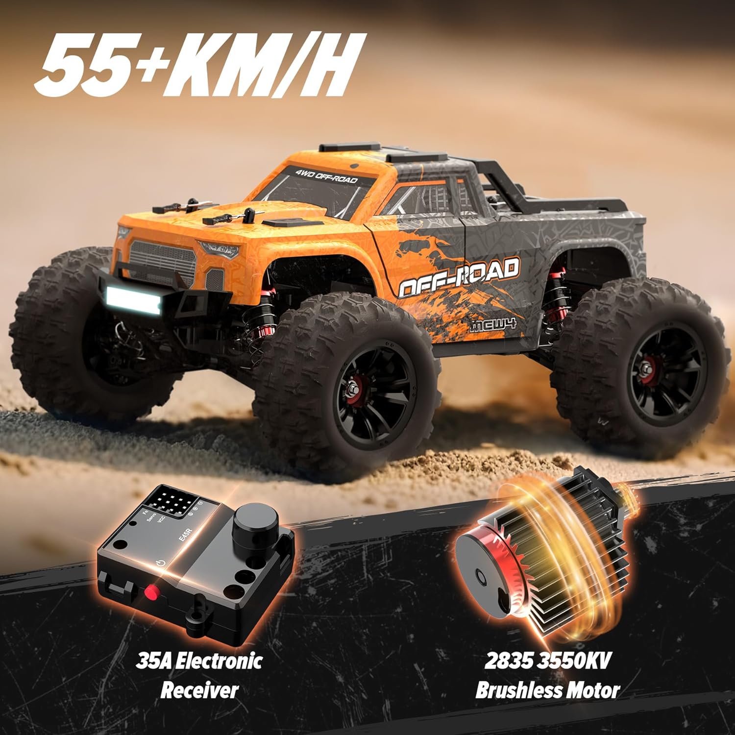 2835 Brushless Motor & 55KM/H Amazingly Fast – This brushless RC monster truck is equipped with a strong 2835 brushless electric motor at KV3550 with a heat sink brings peak Perfomance. The running speed can be up to 55+kmh/33+mph Max.