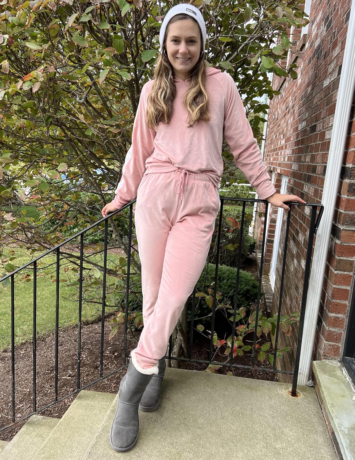 Customers like the softness and appearance of the track suit. They mention it’s perfect to lounge in, and looks cute in the description. However, some customers differ on the fit and material quality.