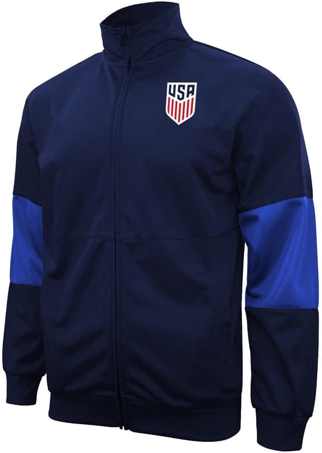 Warm-up with your USMNT fandom on full display with Icon Sport’s official licensed U.S. Soccer full- track jacket. Featuring printed U.S. Soccer logo on the left chest and a big United States decoration on the back, this is the best way to show support to our national team!