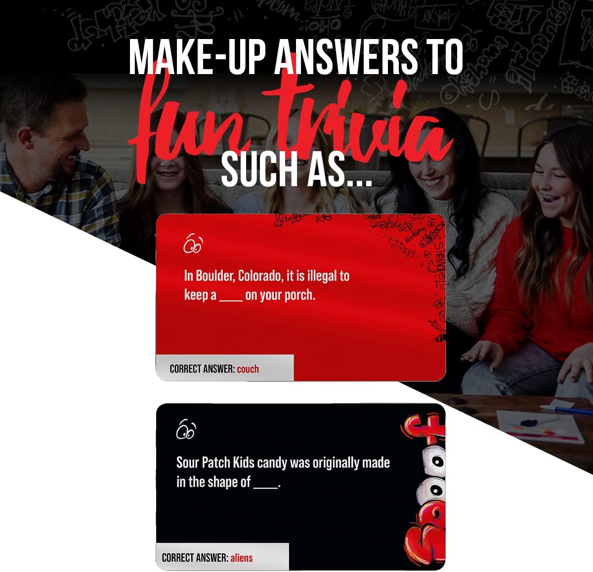Be Creative & Fool Your Friends: “Spoof” your friends by making up clever, fake answers to fun trivia such as “_______ is the national bird of Japan.” “_______ is illegal to have on your porch in Arizona.” Be careful with the correct answers!