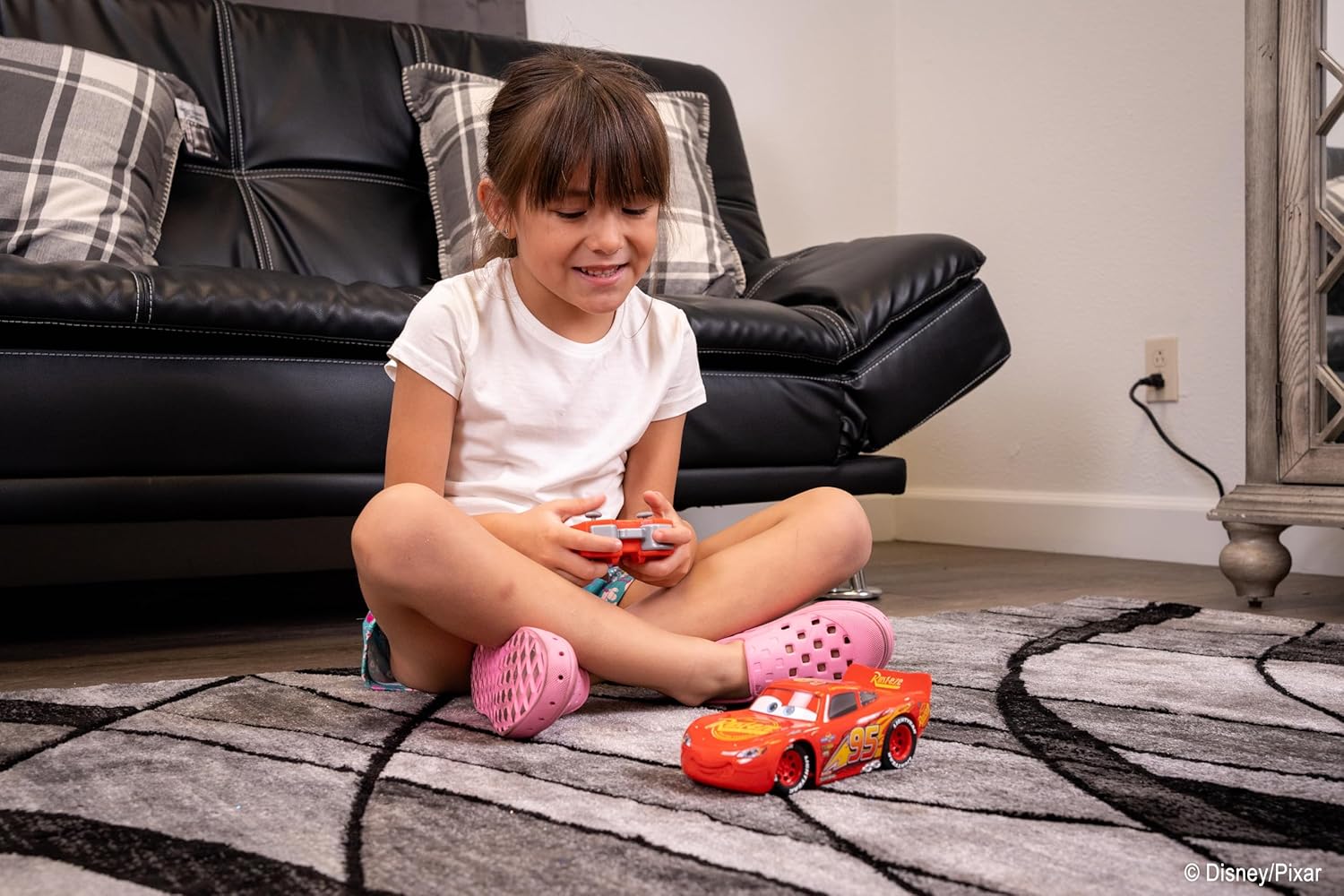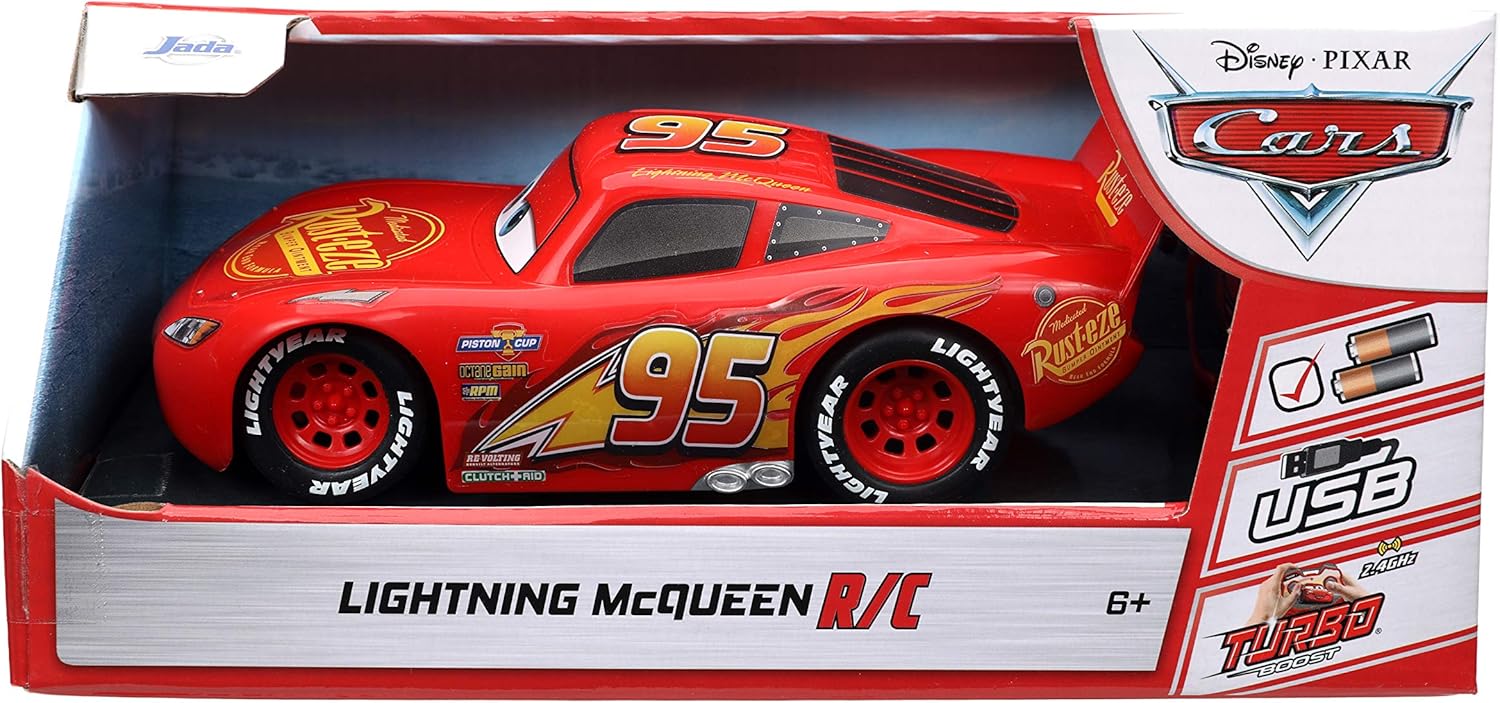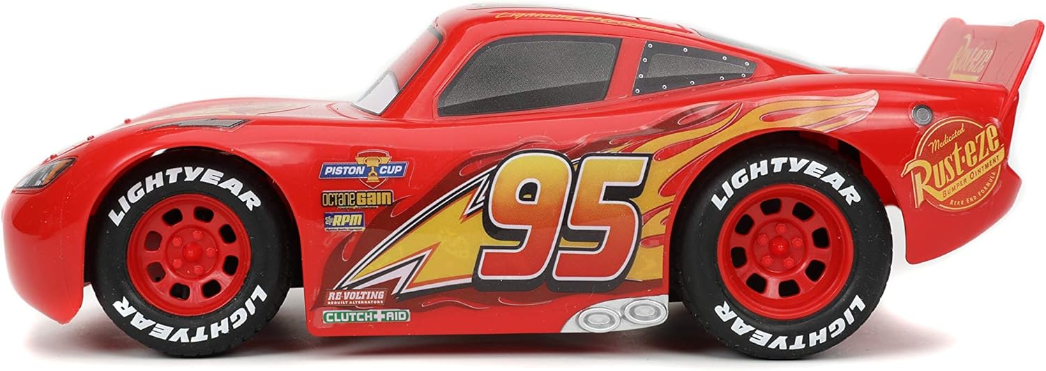Kachow Lightning McQueen ready to win the Piston Cup. This full function R/C features 2.4Ghz, a USB charging technology, and pistol grip controller. This Lightning McQueen R/C is a must have for any racer looking to win the Piston Cup