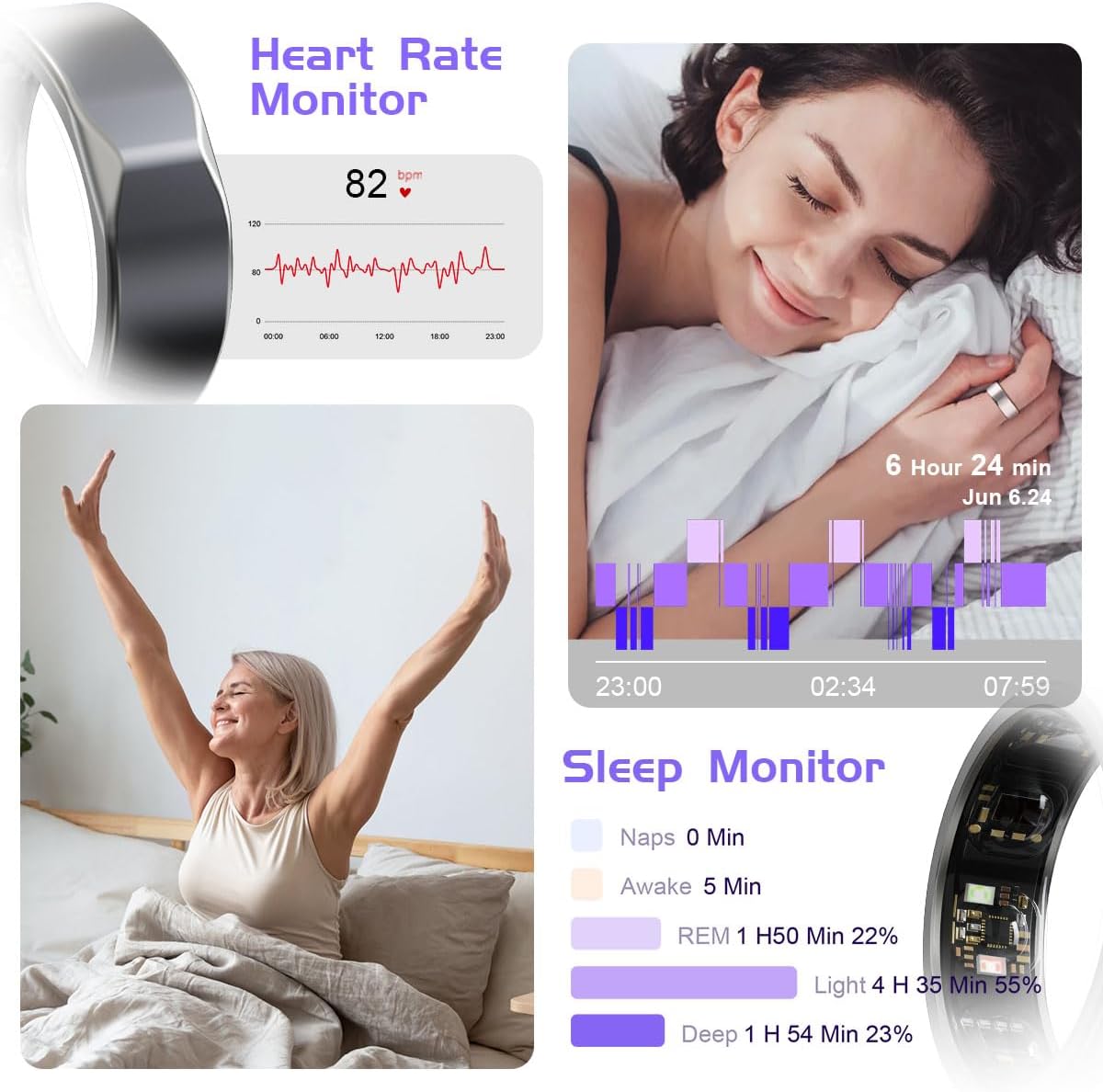 【Get a good night’s sleep】 JCRing’s design is lighter and comfortable compared to traditional smart watches. It is made of skin -friendly high -strength titanium material, which is almost no sense of burden, which is very suitable for long -term wear. What’s more worth mentioning is that the smart ring can provide you with detailed sleep analysis reports, including deep sleep, light sleep, eye movement sleep, etc. It help you understand your sleep status, improving sleep quality.