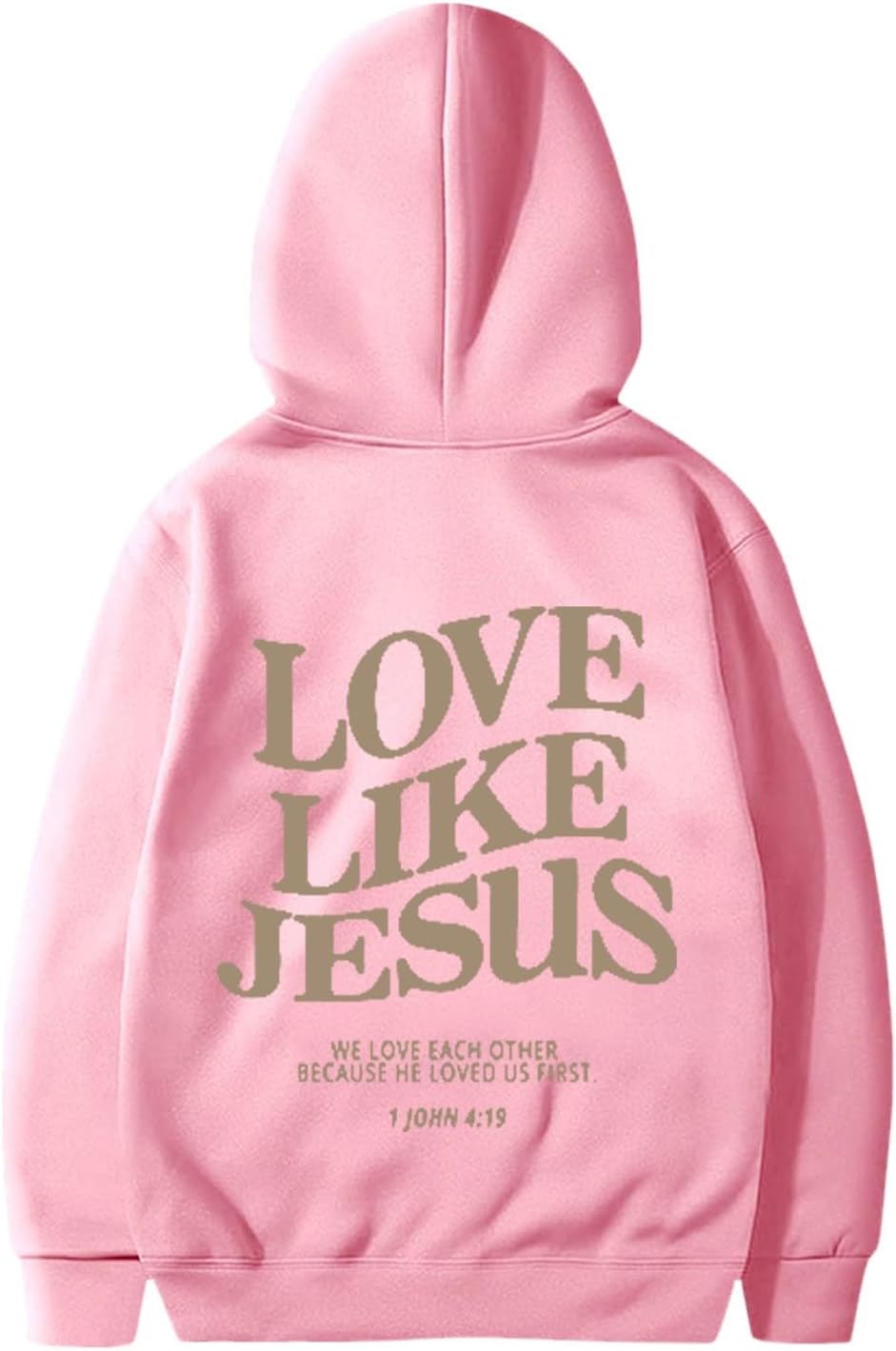 Jesus Loves You Hoodie Letter Graphic Christian Hoodies with Pocket Drawstring Oversized Long Sleeve Sweatshirt Tops