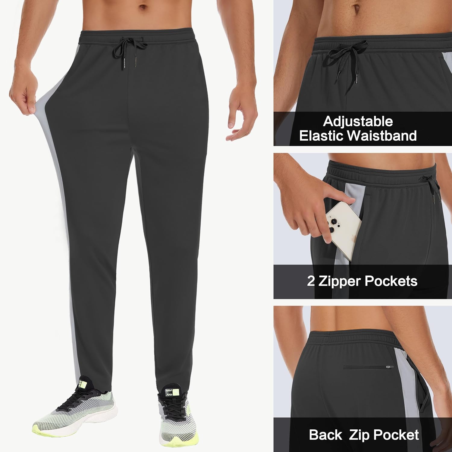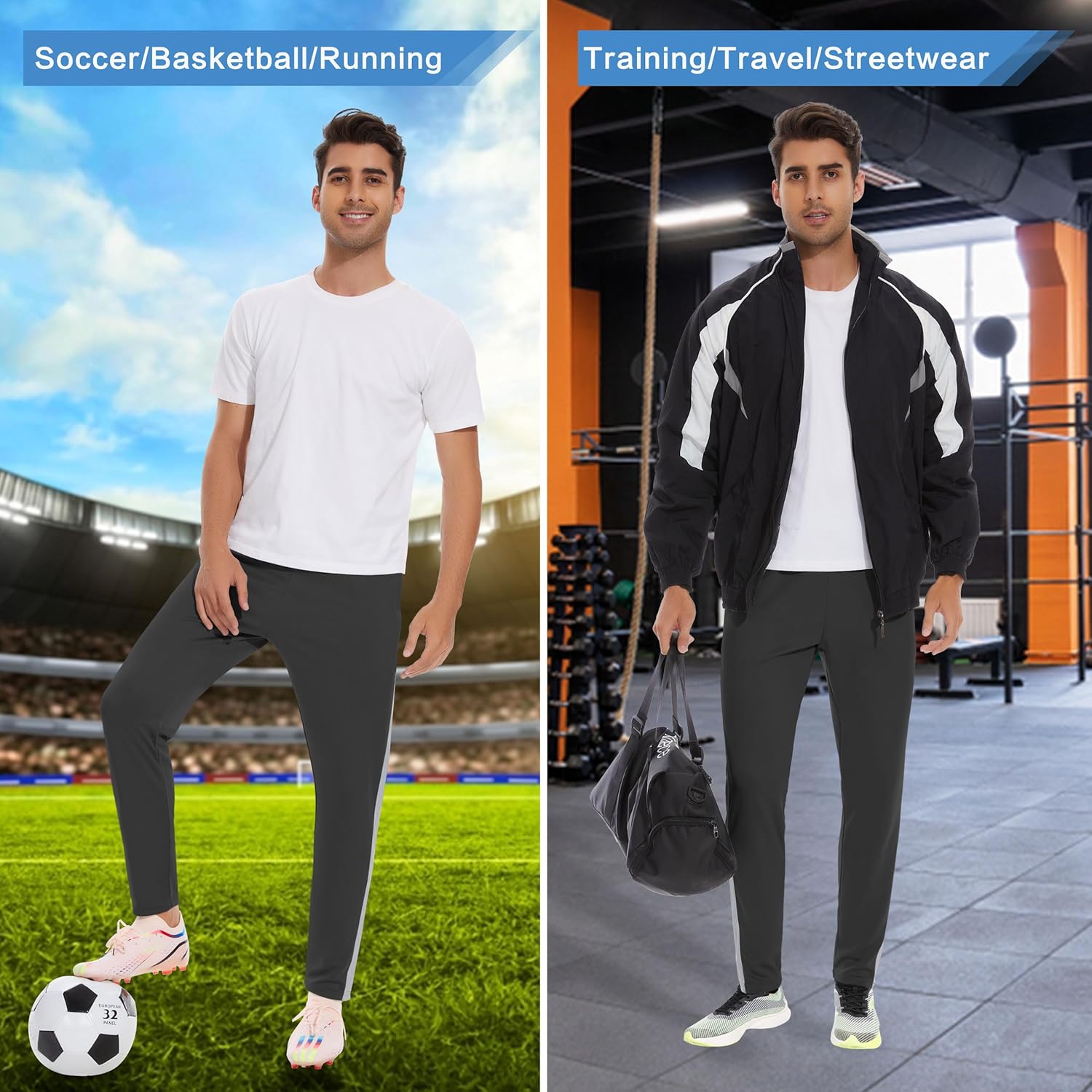 JIM LEAGUE Men’s Track Pants Zipper Leg Openings Running Gym Athletic Workout Sport Soccer Sweatpants Joggers with Pockets