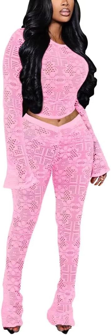 Women Sexy Two Piece Outfits Clubwear Hollow Out Club Outfits