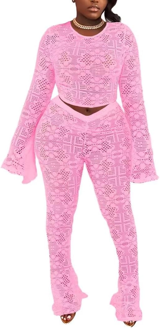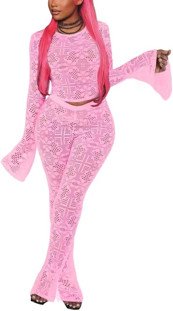 Women Sexy Sheer Mesh Bodycon 2 Piece Outfits Club Wear