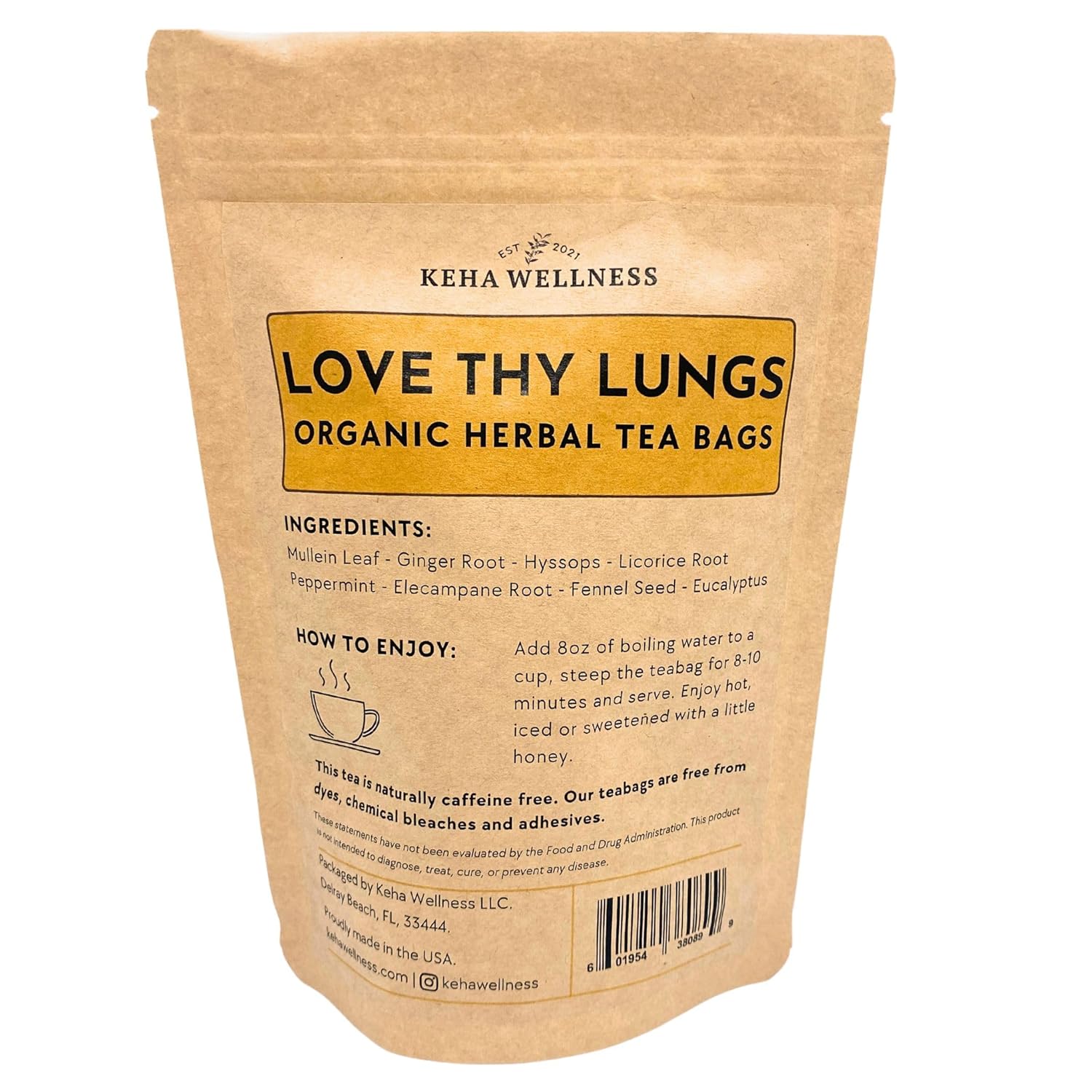 Breathe easier with our Organic Love Thy Lungs Tea Bags. Specially crafted with the finest organic ingredients, these tea bags are designed to support and cleanse your lungs. Our blend promotes better breathing, helps clear mucus, and may assist smokers in quitting cigarettes. Packed with natural goodness, this tea is a delightful blend of carefully selected herbs known for their respiratory benefits.