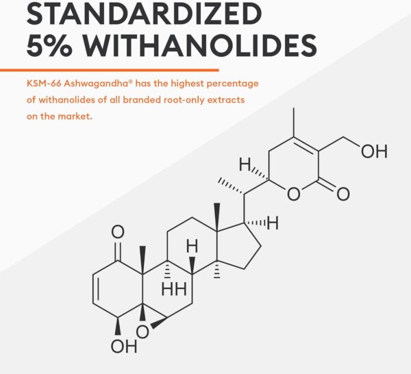 5% Standardized Withanolide Content: Withanolides are the active components responsible for the effects associated with ashwagandha. Too high Withanolide content can be unpleasant, and too little can have no influence. KSM-66 is standardized at 5% to ensure that you get the same reliable dose each time.
