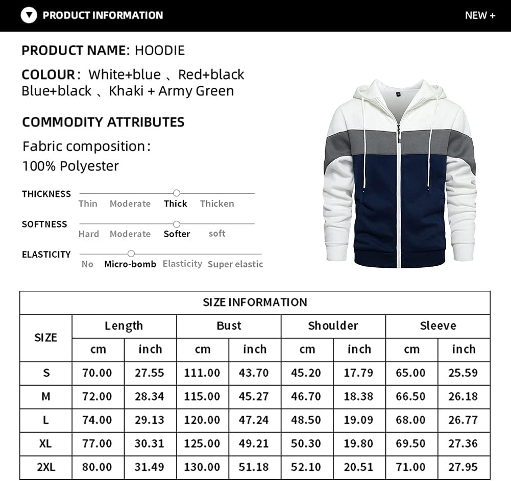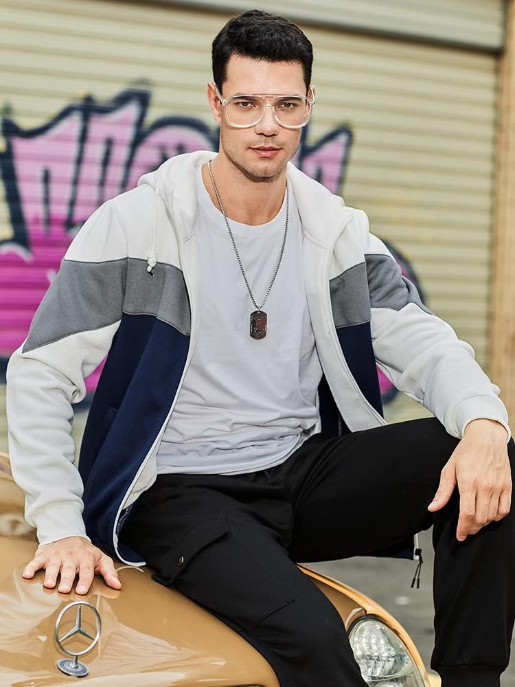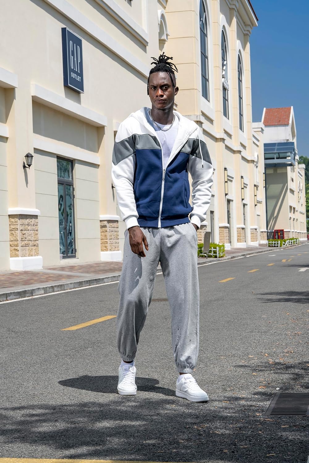 LBL Mens Slim Fit Long Sleeve Zip-up Fleece Hoodie Color Block Sweatshirt