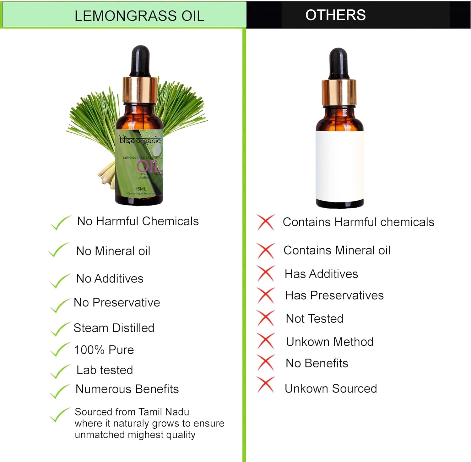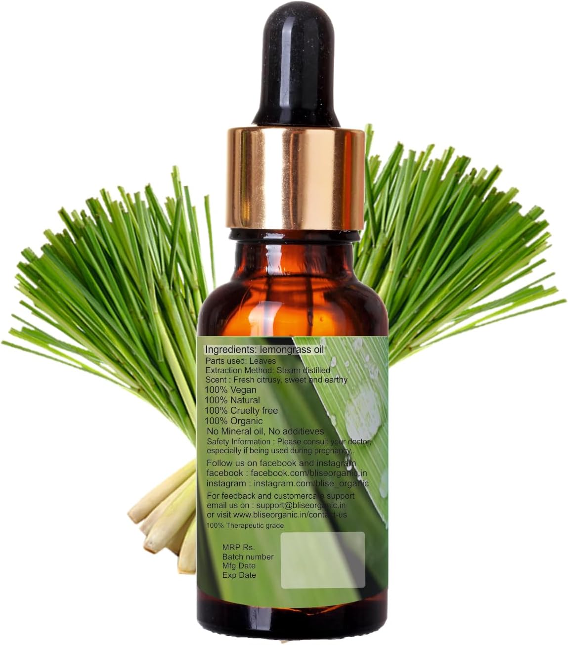 Blise organic lemongrass essential oil has a lemony, sweet and earthy aroma. 100% Pure and organic essential oil