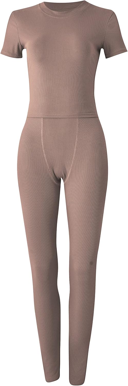 Casual Stretchy Two Pieces Yoga Workout Outfits, Ribbed Crop Tank Elastic Waisted Shorts Fitted GMY Running Sport Activewear
