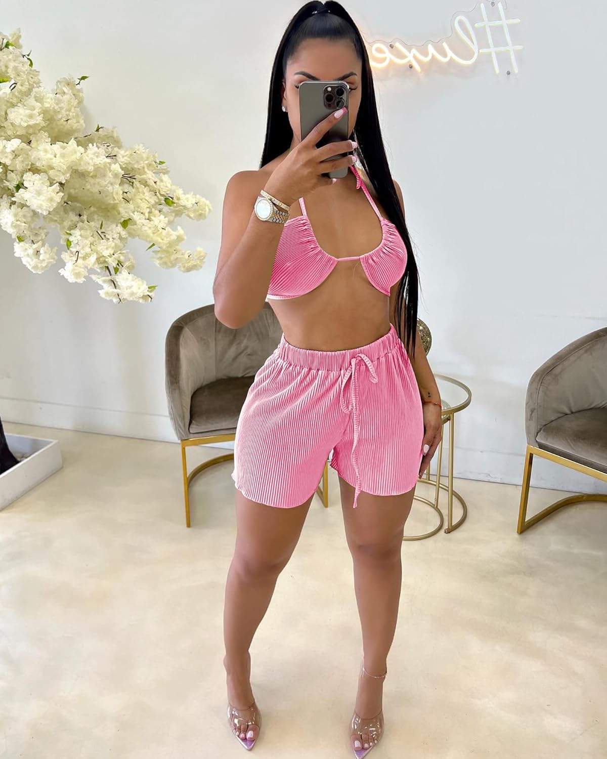 Be the first to review “Lounge Sets for Women 3 Piece Vacation Outfits Y2K Ruffle Long Sleeve Pleated Cardigan and Bra Sexy Club Outfits”
