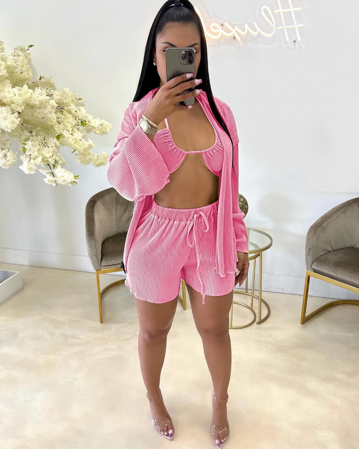 3 piece outfits for women shorts set