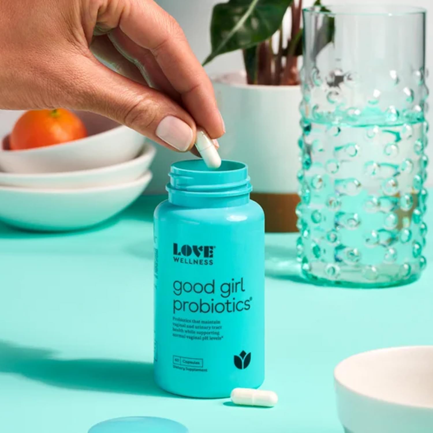 VAGINAL PROBIOTICS: Good Girl Probiotics by Love Wellness is a vaginal support supplement for women. It helps maintain a balanced pH, immunity, urinary tract health, and healthy yeast levels.* Serving size 2 capsules, 30 servings per bottle.