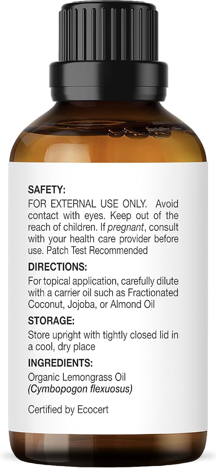 The Lemongrass Essential Oil should generally be diluted with a carrier oil before applying it to skin to minimize the risk of irritation or sensitization.