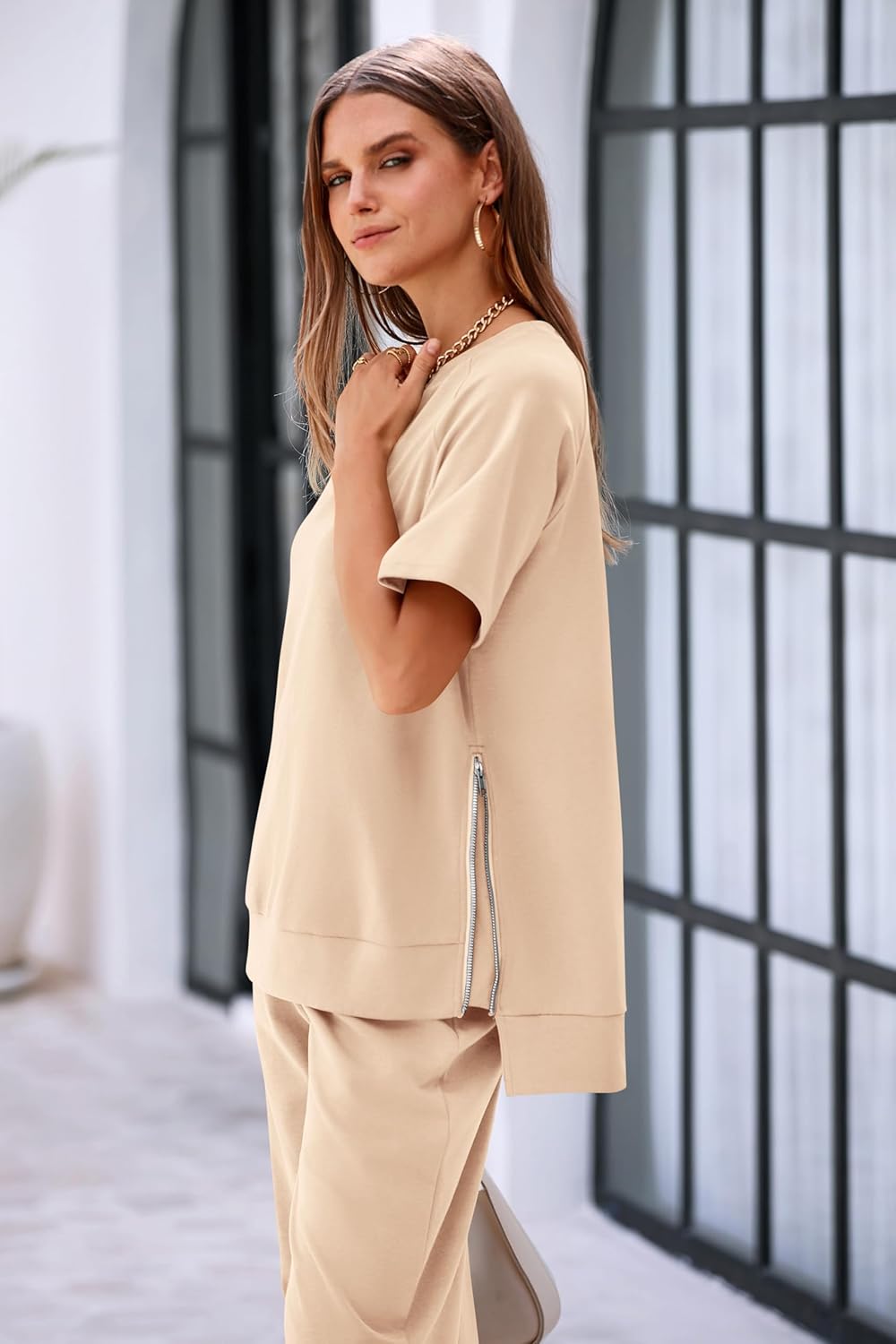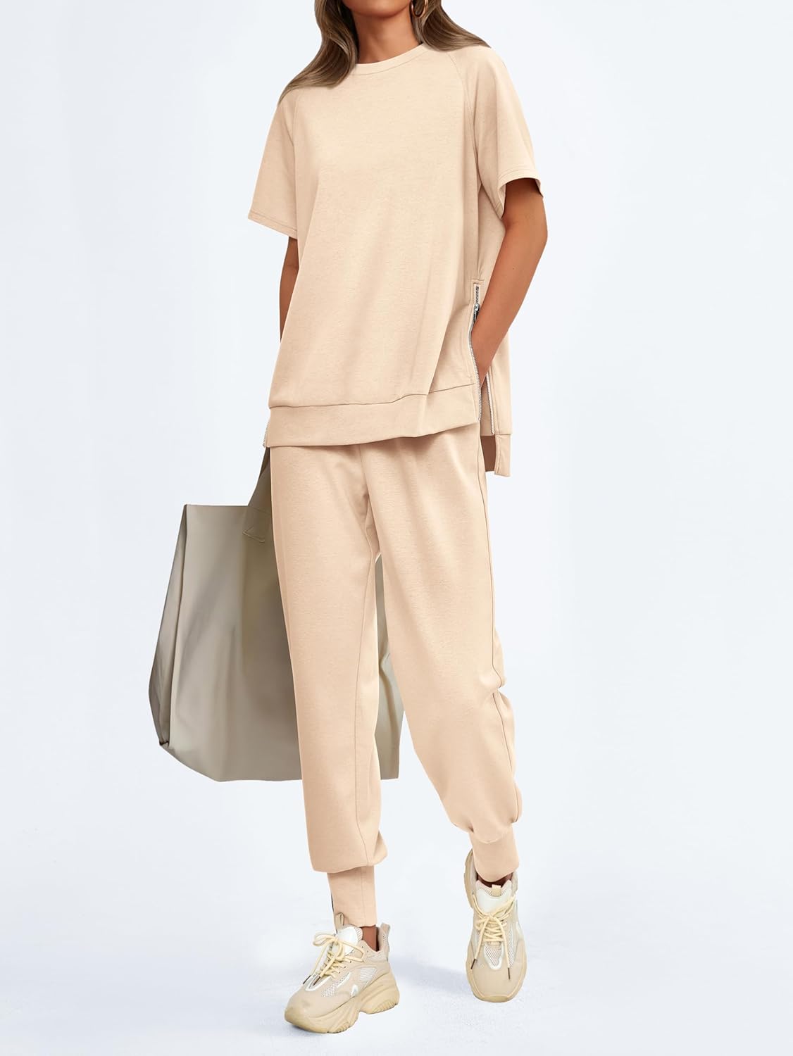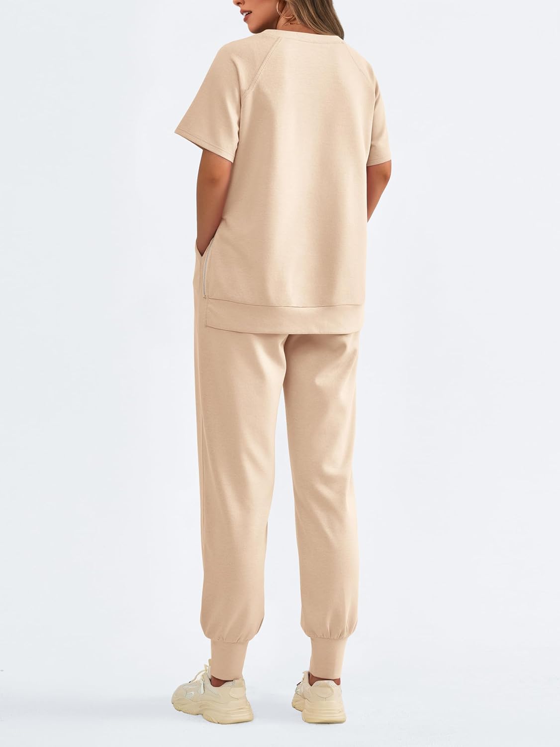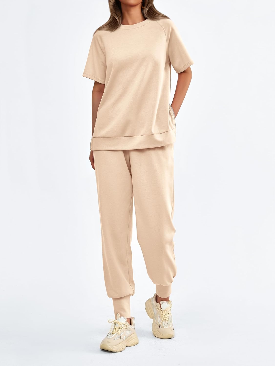 MASCOMODA Summer Lounge Sets for Women Crewneck Tops with Side Zipper Sweatpants