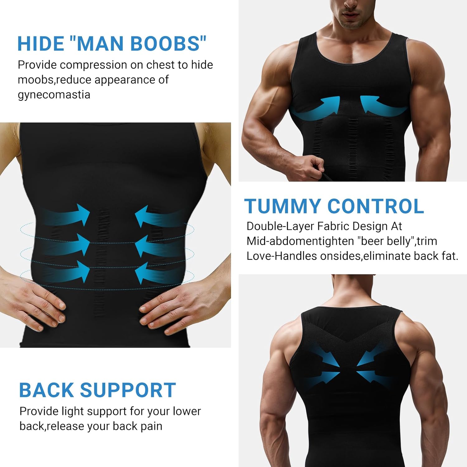 MEETYOO Gynecomastia Compression Shirts for Men, Workout Tank Top Shapewear Body Shaper Undershirt Slimming Tummy Vest