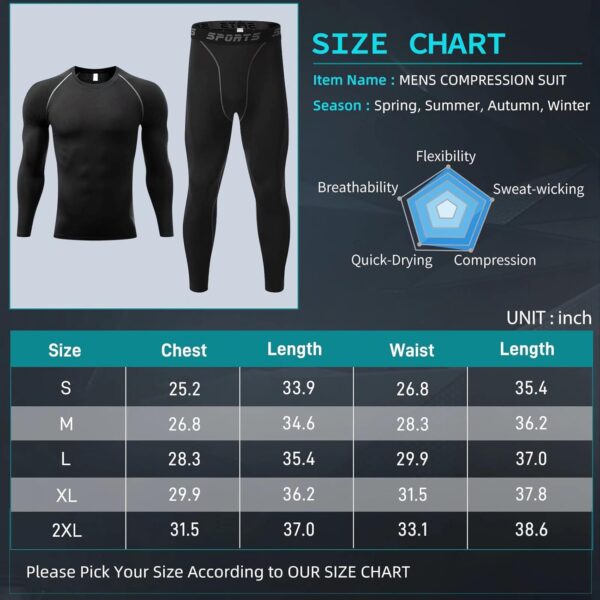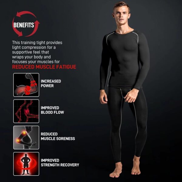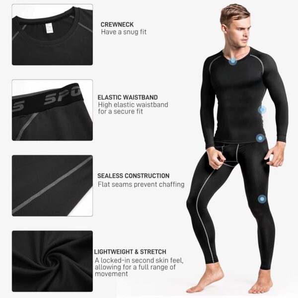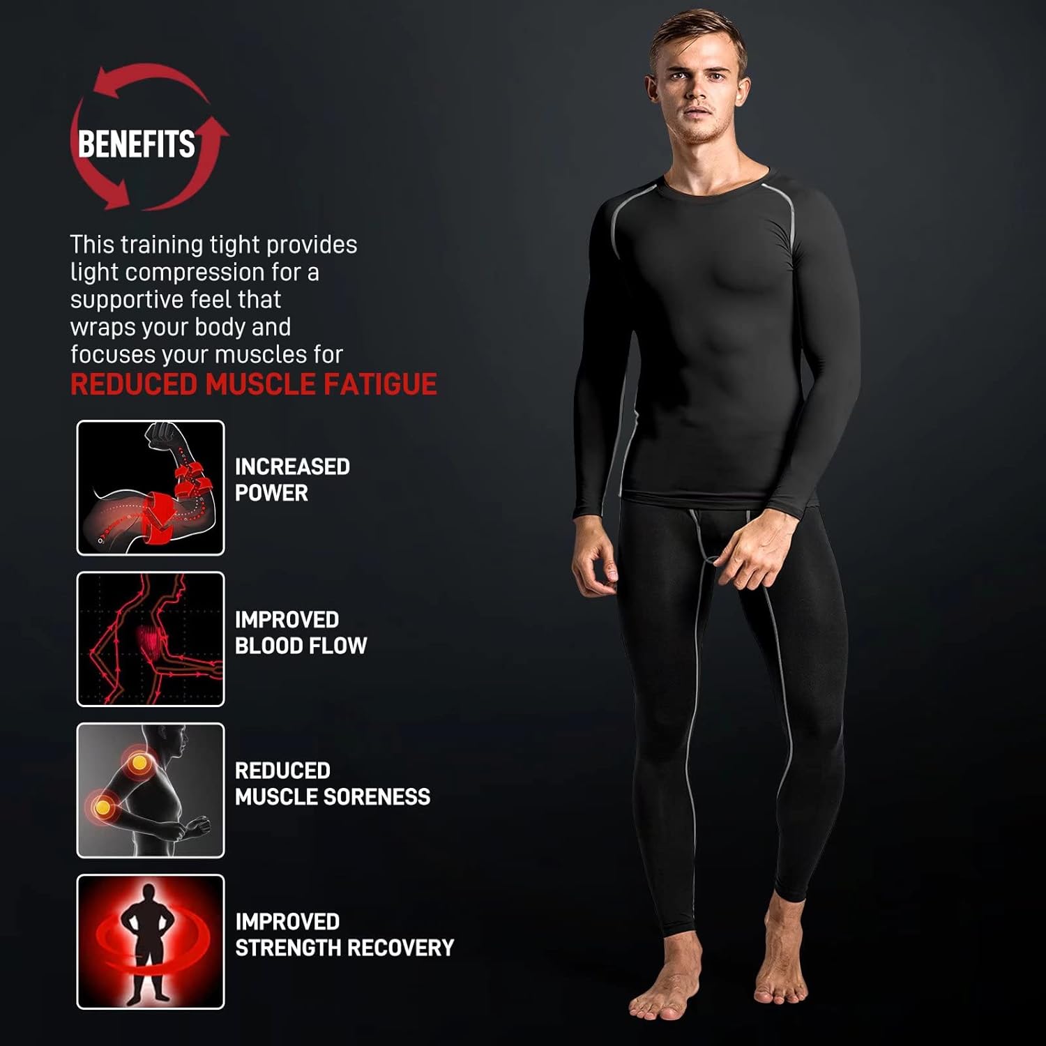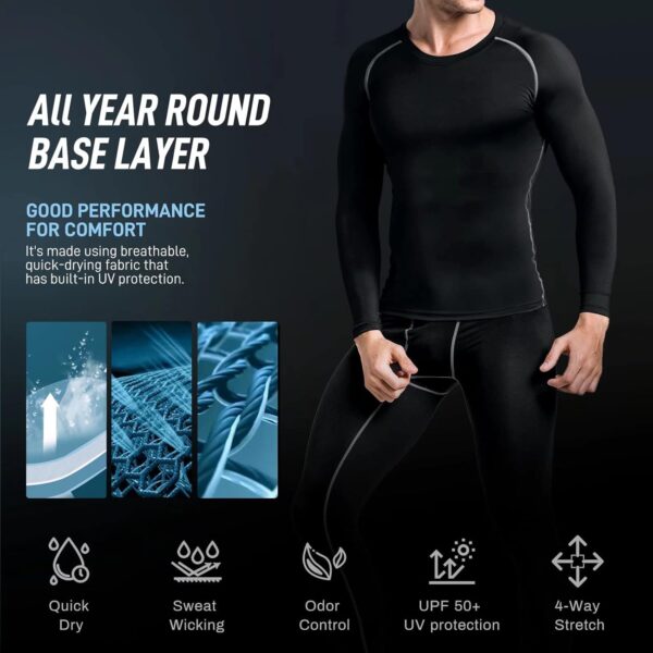 【Compression Support & Comfort】- This men compression base layer feature delivers a comfortable,locked-in feel that wrap your body for elbow and arm,hip,knee and lower leg muscles support.The pressure without restriction cuts down on muscle vibration,boost blood circulation to your hard-working muscles, helping reduce muscle fatigue. 【Quick Dry & Sweat-wicking】- These thermal underwear for men are made of a soft 90% polyester/10% spandex material provide a second-skin feel while anti-odour fabric that effectively draws your sweat away from the body to leave you feeling fresher for longer. 【4 Way Stretch & Not Restrictive】- These mens compression shirt are made from super-stretchy ,durable fabric and close-fitting cut for greater freedom of movement. 【UPF 50+ Sun Protection】- Its soft, anti-UV fabric, this long sleeve cycling base layer for men protects you from damaging effects of UV light in outdoors. 【Designed for All Season & Most Sports】- Medium weight mens thermal underwear designed to work well in a variety of temps, all year round. It is great for daily exercise,basketball,bodybuilding, cycling,running,jogging,football,walking,and so on.