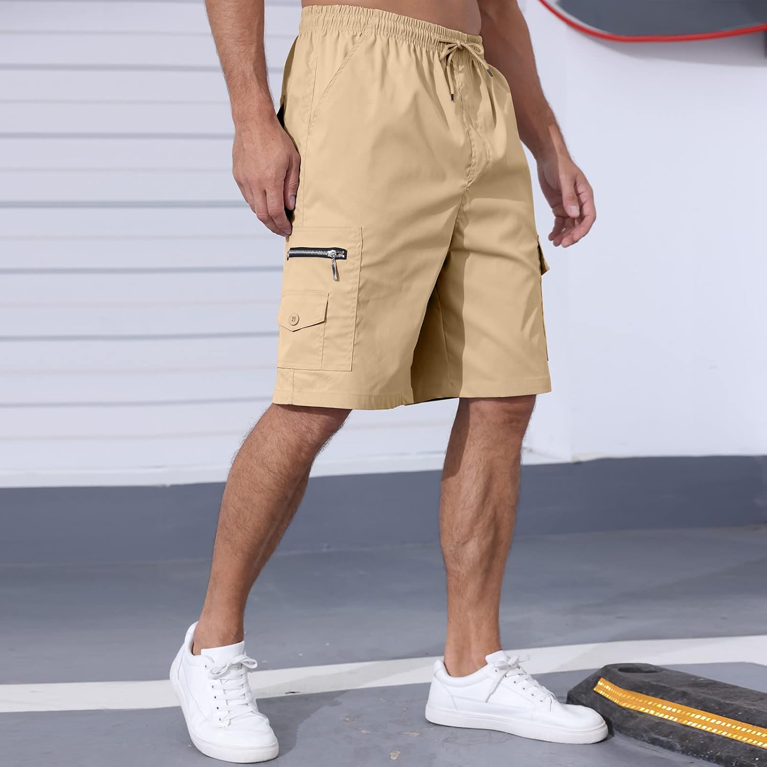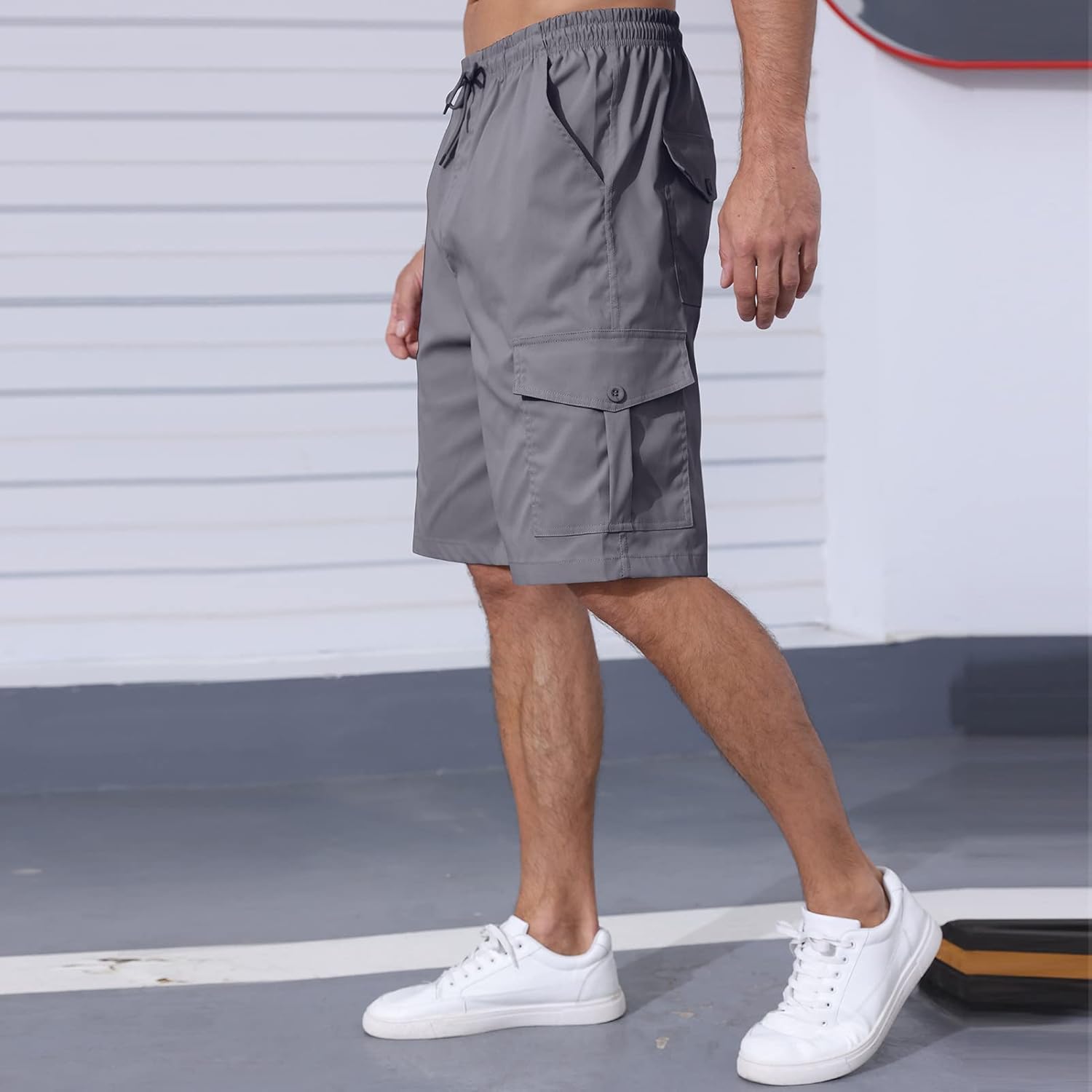 Men’s Cargo Shorts Elastic Waist Outdoor Relaxed Fit Sport Shorts Jogger SweatShorts with Multi-Pocket
