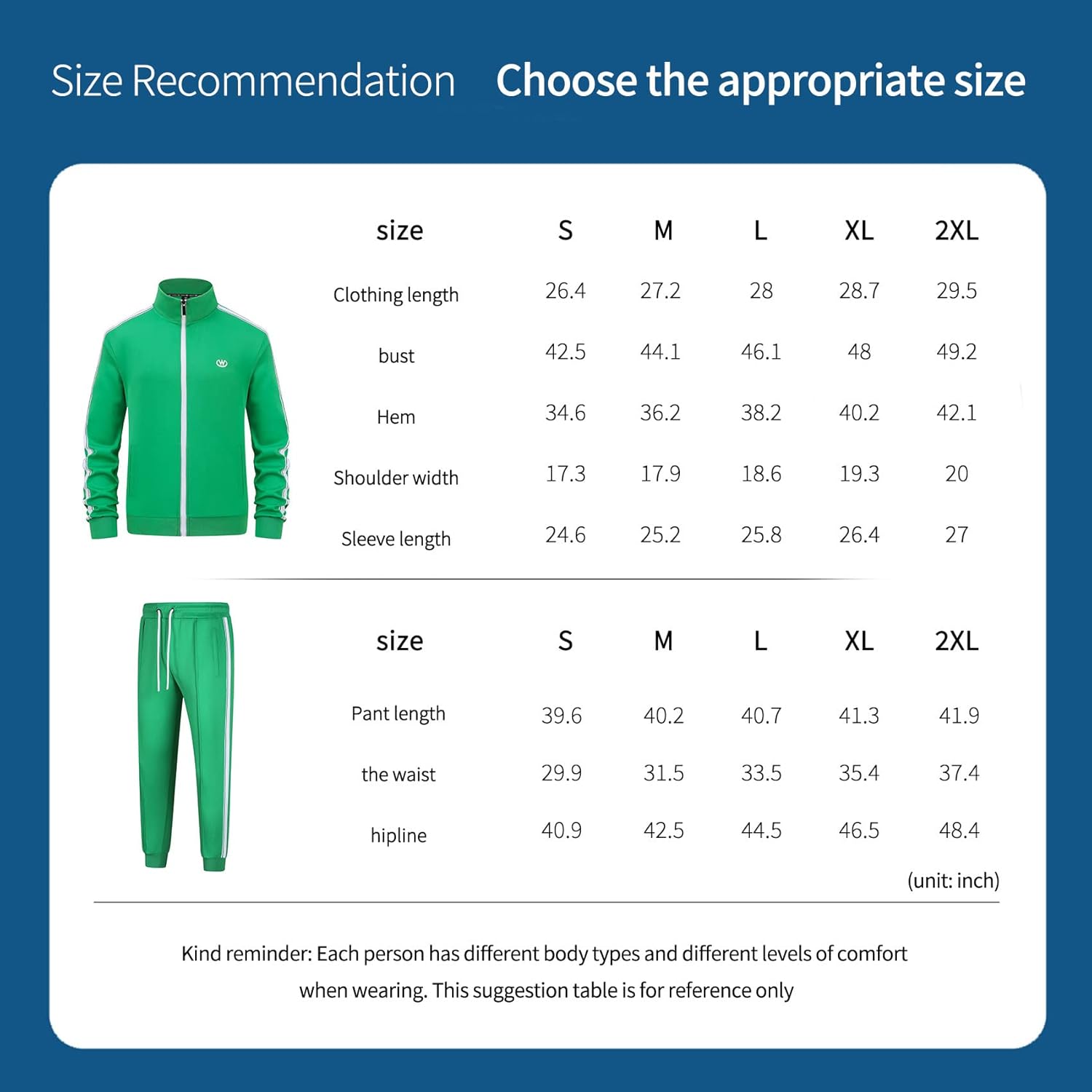 Customers like the fit, appearance, and quality of the track suit. They mention it’s a nice looking jogger, matches their sneakers well, and is comfortable.