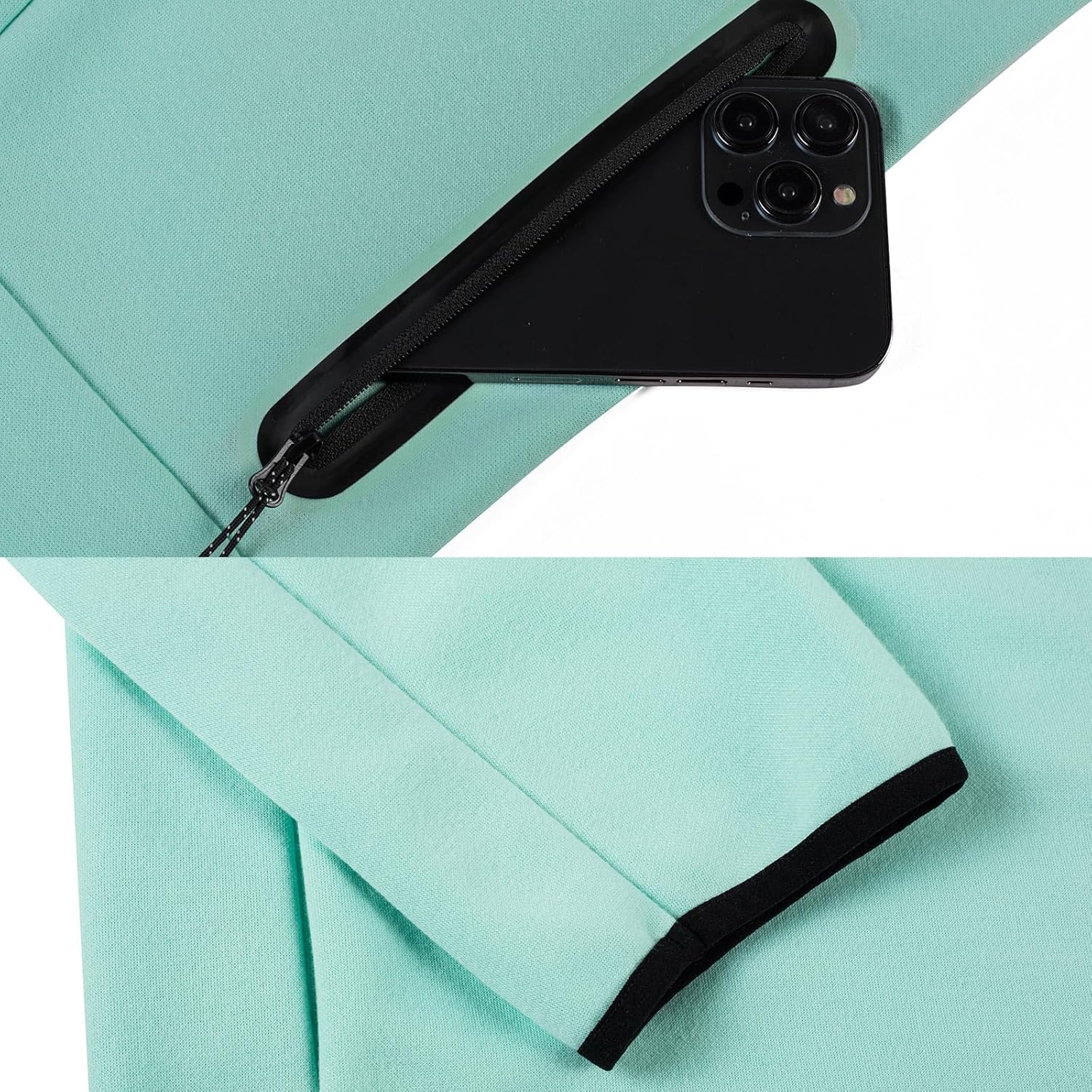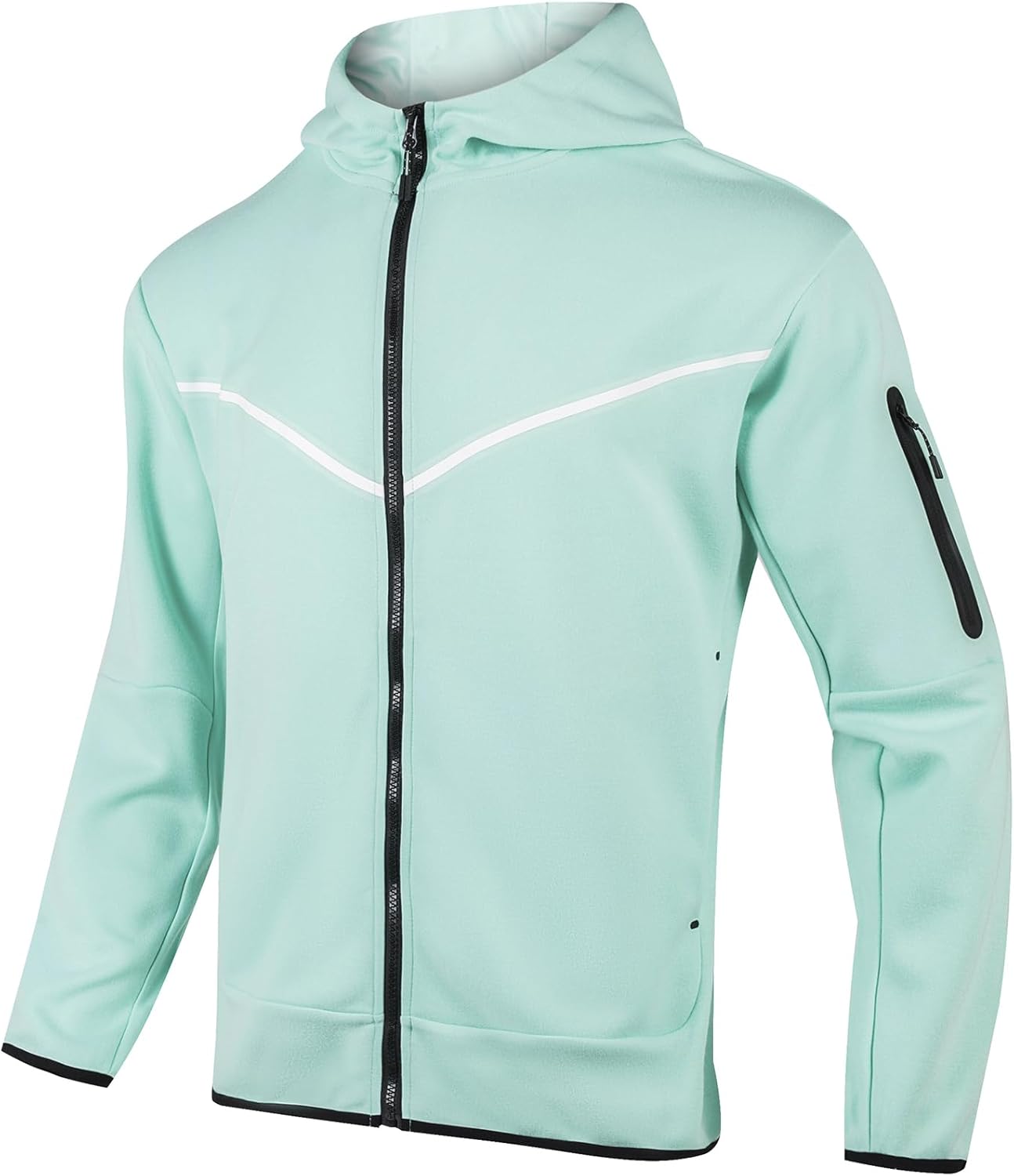 Full front zipper with hooded design for easy on and off; side pockets, top exterior pockets for securely storing small items during workouts; hoodie collar provides extra. coverage and protection; great for casual sports running.