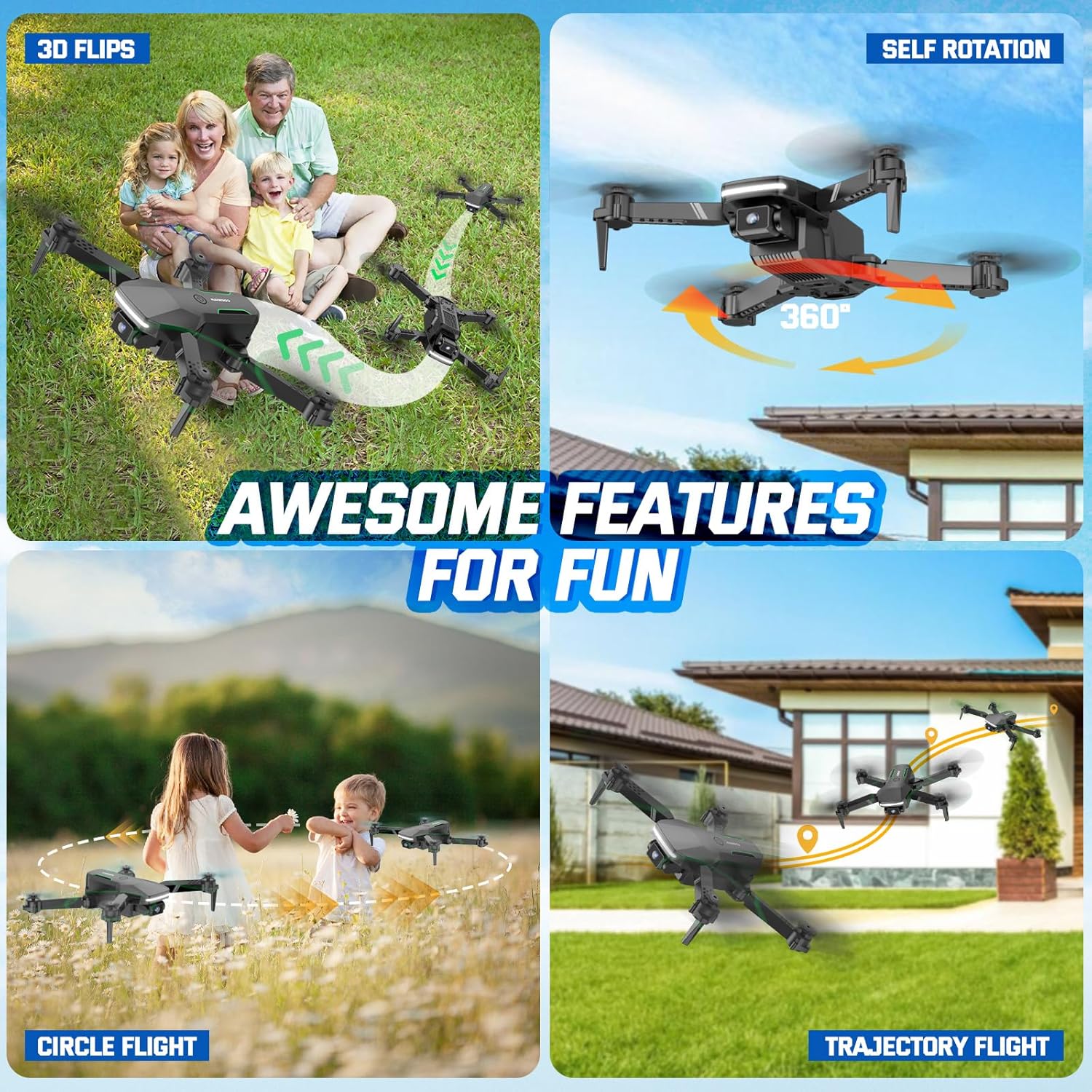 Fun Remote Control Aerial Stunts: Kids can easily fly this rc drone without a mobile phone; Support highly responsive functions like 3D flip, high-speed rotation, and circle flight; High speed to anti-wind for expert, adds endless fun in your leisure time