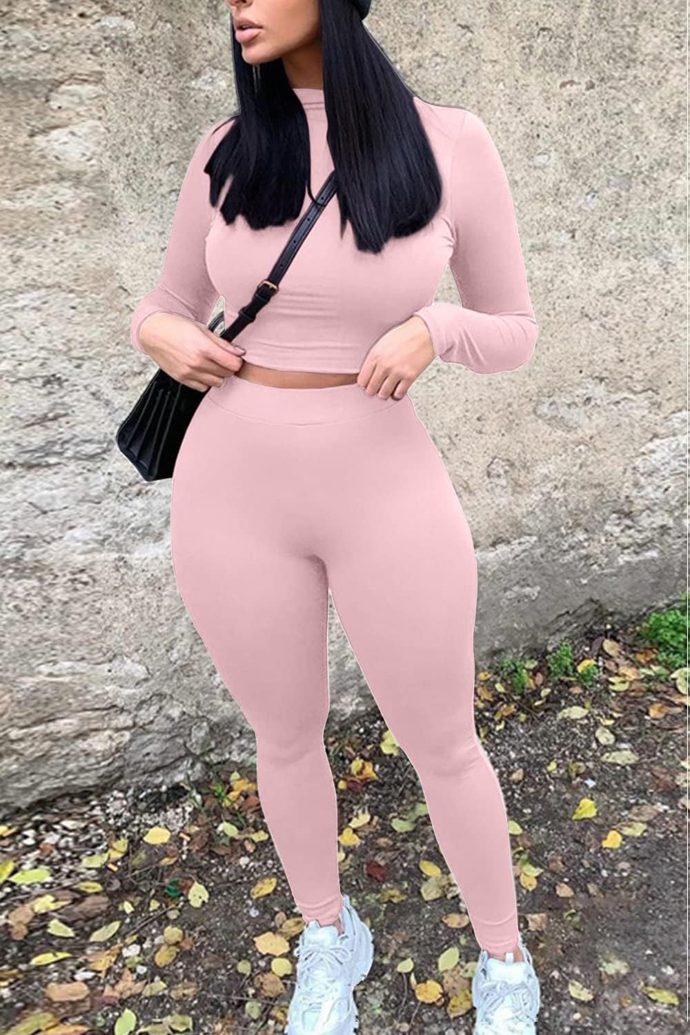 Long Sleeve, Sexy Crop Top, Solid Color, High Waisted Leggings, Bodycon Long Pants, 2 Piece Tracksuit Set, Basic Outfit Sweatsuits Jumpsuit