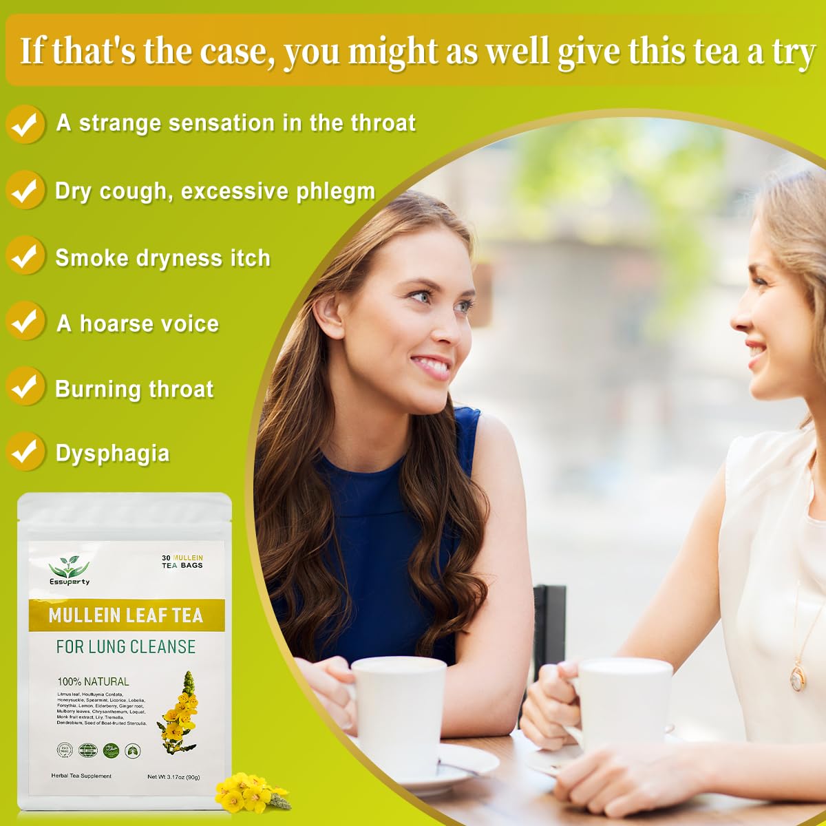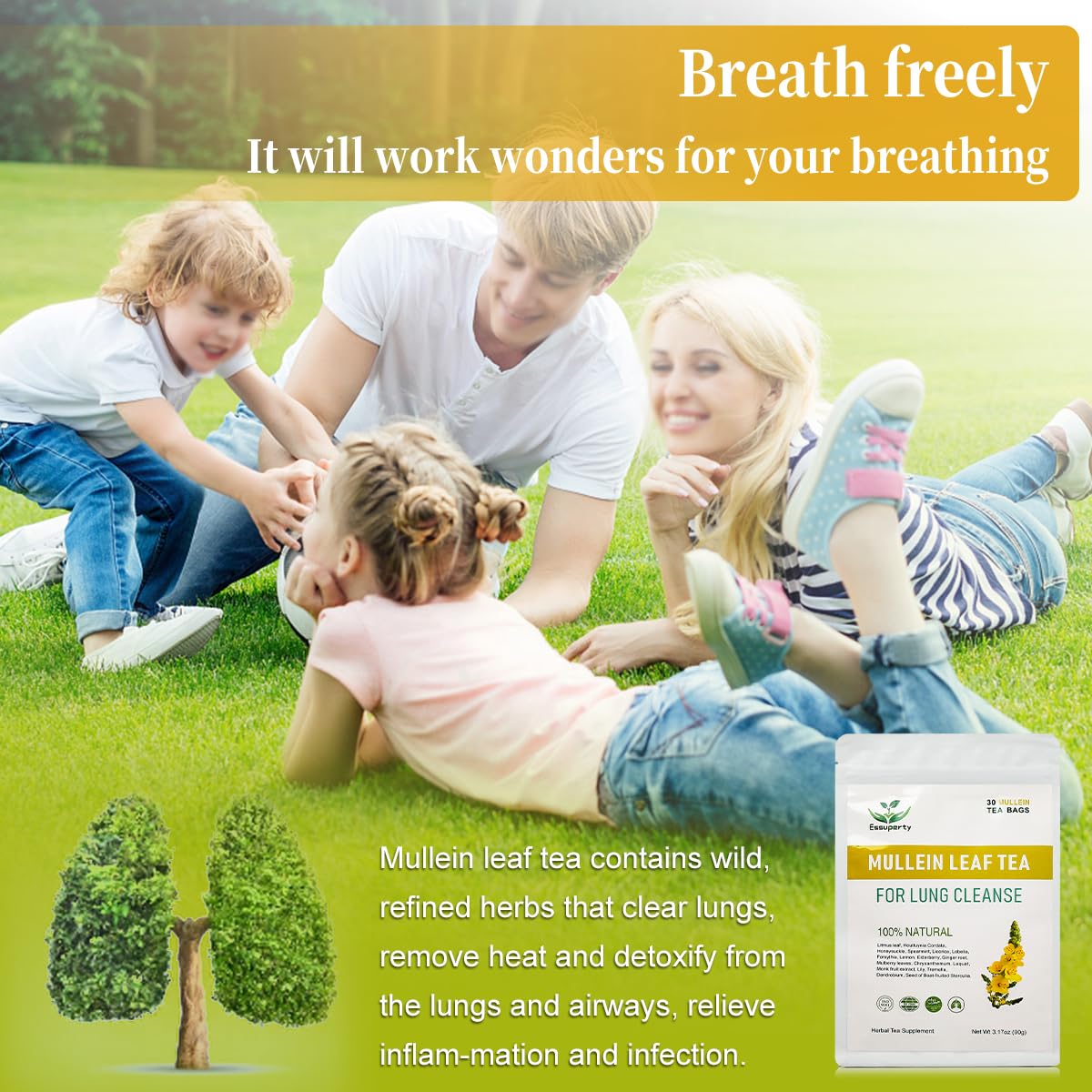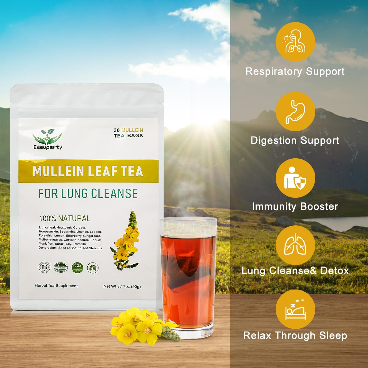Lung-Friendly Tea Bags: Specifically formulated for lung health, each tea bag is packed with the soothing essence of Mullein, offering a caffeine-free solution for those seeking respiratory comfort.