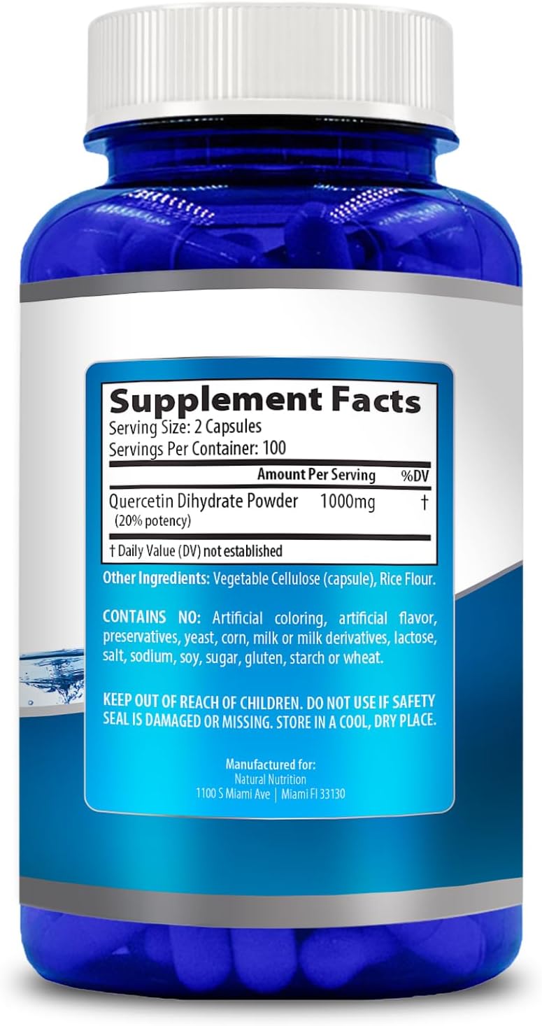 Quercetin contains 1000mg of high concentration Quercetin per serving plus 200 Capsules