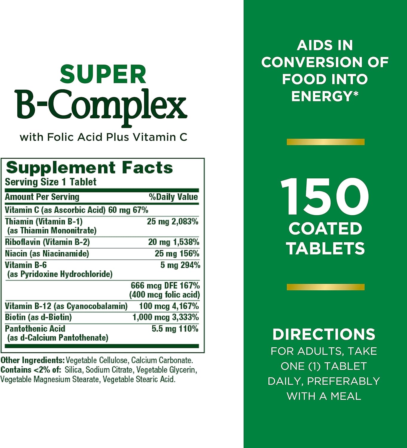 Nature s Bounty, Super B Complex with Vitamin C Folic Acid Immune Energy Support 150 Tablets,., Nature s Bounty 自然之宝 超级 B 复合维生素 C 和叶酸 免疫和能量支持 150 片。, Nature s Bounty, Complexo Super B com Vitamina C e Ácido Fólico – Suporte Imunológico e Energético – 150 Comprimidos., نيتشورز باونتي, مركب سوبر بي مع فيتامين سي وحمض الفوليك يدعم المناعة والطاقة 150 قرصًا., Nature s Bounty,Super B 複合物,含維生素 C 和葉酸 免疫和能量支持 150 片。, Nature s Bounty, Super B Komplex mit Vitamin C Folsäure Immun Energieunterstützung 150 Tabletten, Nature s Bounty, קומפלקס סופר B עם ויטמין C וחומצה פולית תמיכה חיסונית ואנרגיה 150 טבליות,., Nature s Bounty, Complejo Super B con Vitamina C y Ácido Fólico Apoyo Inmune y Energético 150 Tabletas,., Nature s Bounty, 비타민 C 및 엽산이 함유된 Super B 복합체 면역 및 에너지 지원 150정