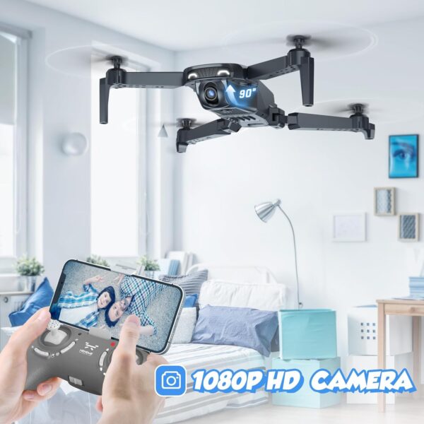 HD CAMERA & FPV FUNCTION: This Drone equipped with 80° adjustable 1080P HD camera, which can record every moment in your life. Meanwhile, with FPV real-time transmission tech, you can enjoy real-time images through App for beautiful scenery
