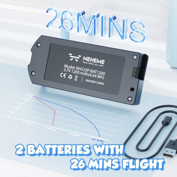 SAFETY & ULTRA-LONG FLYING TIME: NH525 drone is equipped with 4 Propeller Guards to protect you from spinning propellers and ensure the drone’s propellers from the collision; 2 intelligent batteries for up to 26 minutes ultra-long flight time