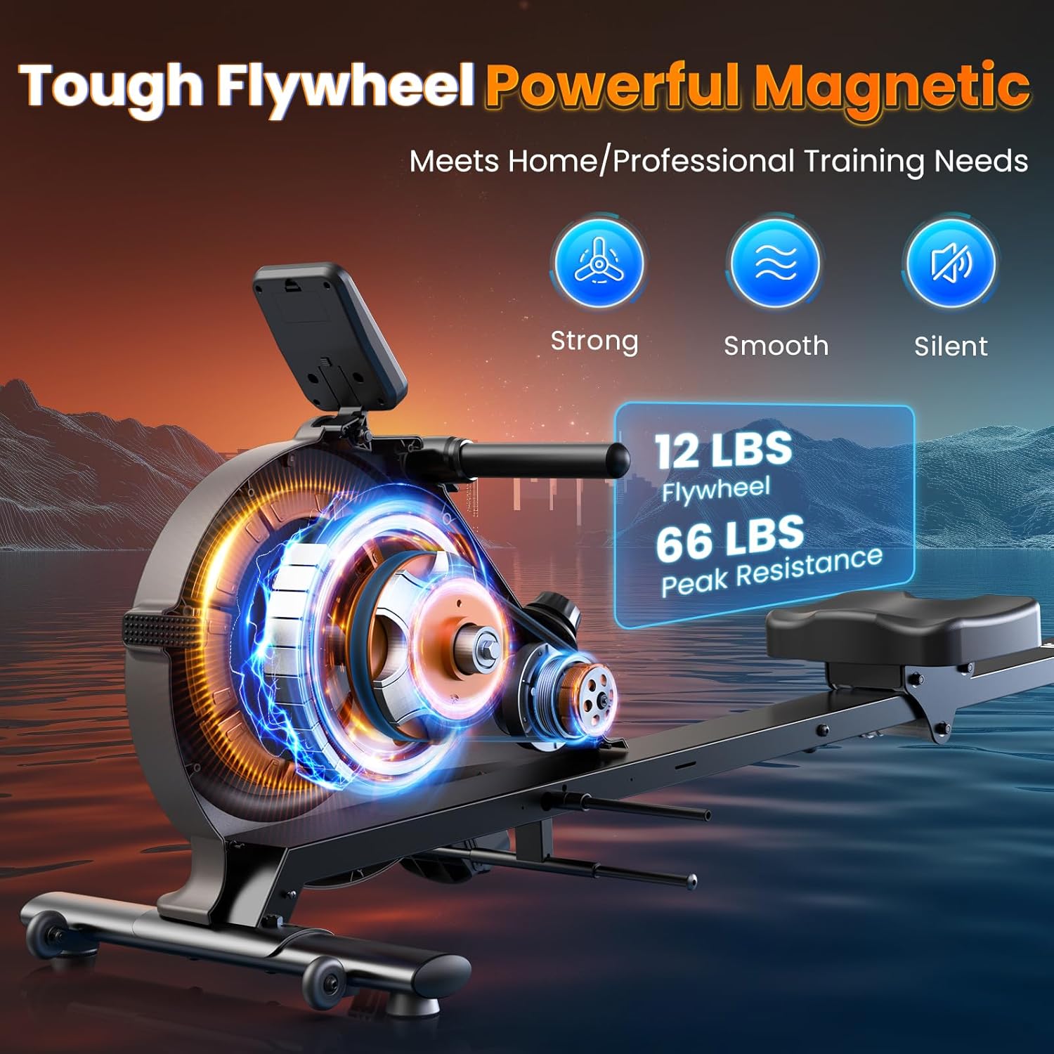 Smooth & Quiet Rowing: A custom strong magnetic resistance system ensures quiet, smooth rowing, making it ideal for use any time of day without bothering other family members