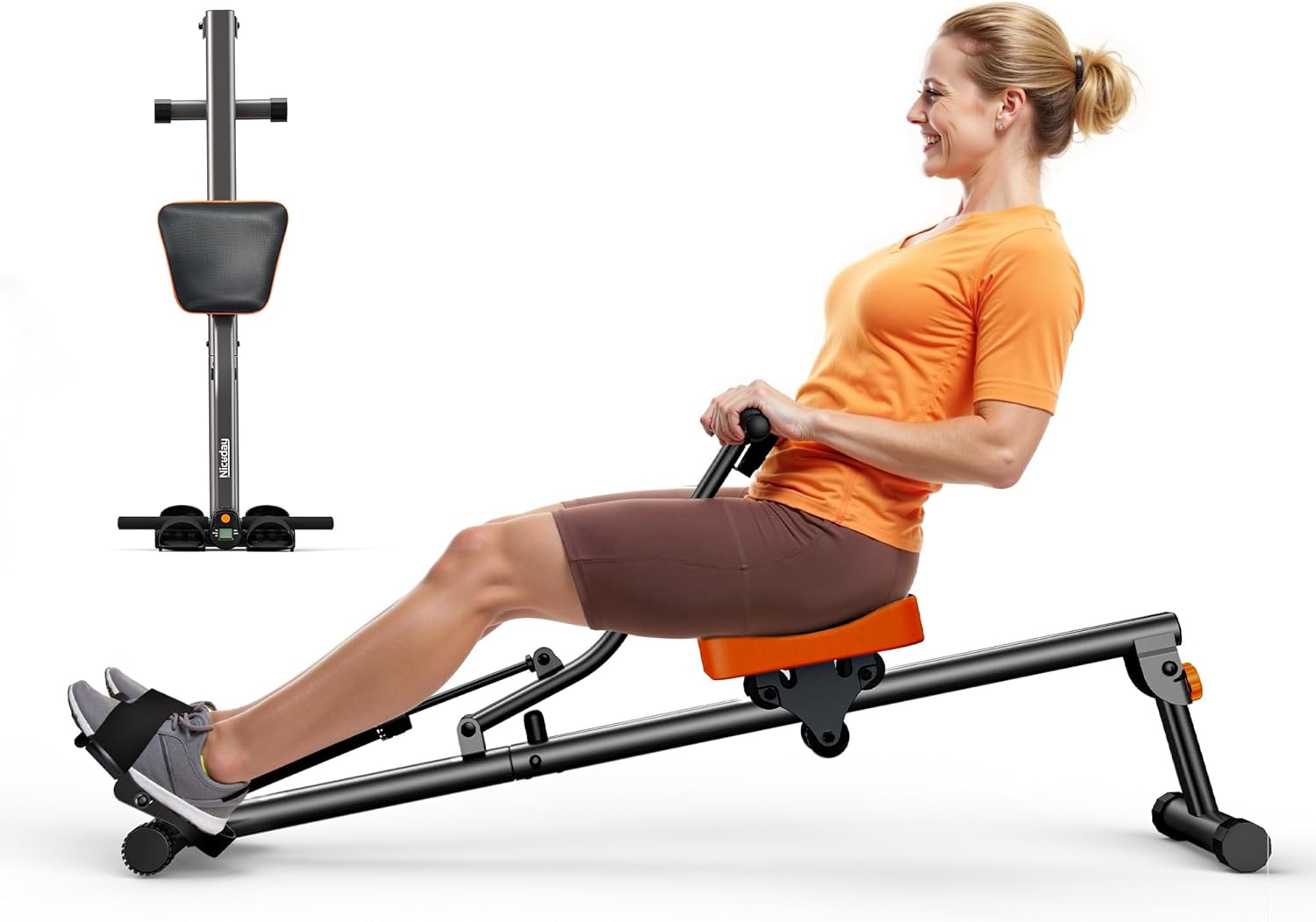 Efficient Fat Burning: Niceday rowing machine provides a low-impact full-body fat-burning exercise, engaging core muscles including arms, shoulders, abdomen, and legs without stressing knees or ankles; Ideal for weight loss-body shaping