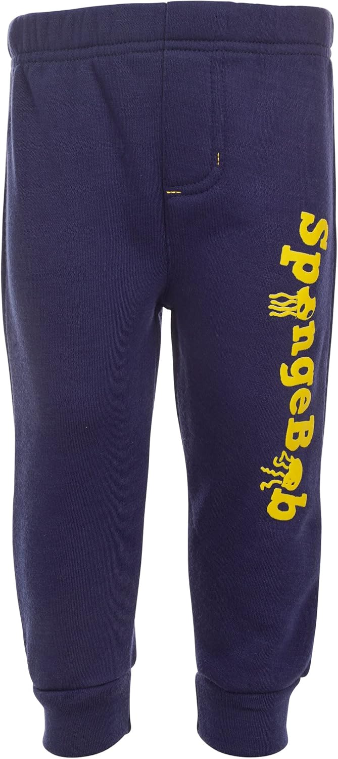 Colorful swim shorts with fun artwork of SpongeBob and his best friend Patrick Star on a blue watery background. Perfect for a day at the beach. Cute short sleeve t-shirt and shorts set featuring the funny sea sponge from Bikini Bottom. Great for those sunny summer days. Cozy cosplay style yellow hoodie featuring SpongeBob’s wide eyes and toothy smile. Keeps your kid warm on those chilly days. Comfy costume coverall designed to look like the friendly SpongeBob complete with his iconic square pants and big grin. Great for dress-up and play. Funny long sleeve graphic tee with artwork of SpongeBob making a face and the words “I Paused My Game For This.” Perfect for your video game fan. Pack of 2 soft fleece jogger pants featuring cute goofy artwork of SpongeBob SquarePants. Comfortable for all day play.