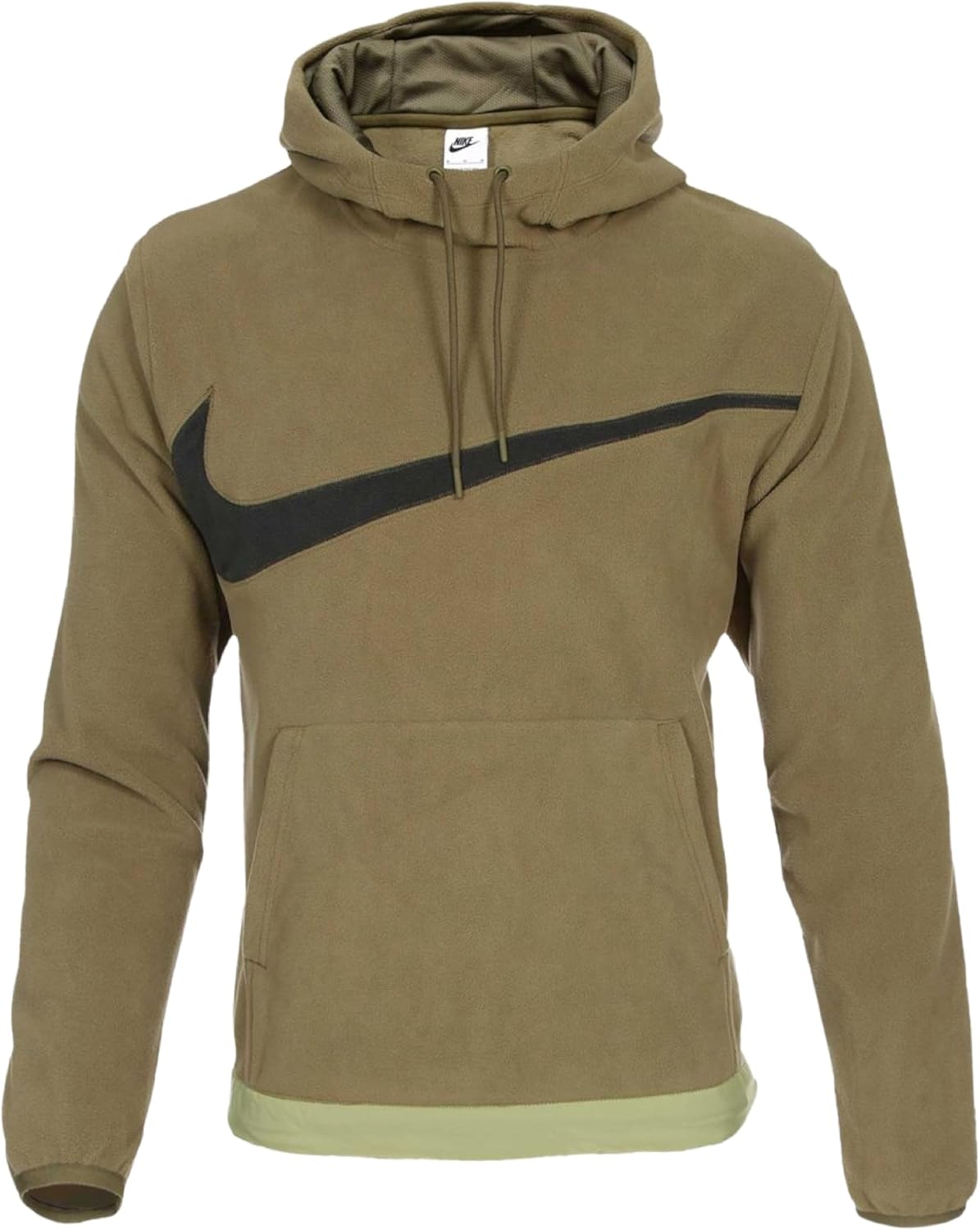 Micro polar fleece fabric is a soft, lightweight material that is brushed for extra warmth. Adjustable bungee and cord-lock at the hem helps you cinch up the fit to fight off the chill. 3-panel scuba hood adds more coverage, plus it’s lined with cool mesh for a bit of airflow. Deep Kangaroo pocket gives you an easy place to stash your things and warm your hands. Thin elastic cuff and hem binding with woven ripstop casings help hold in your heat. A Swoosh appliqué is sewn on the chest for a bold Nike vibe.