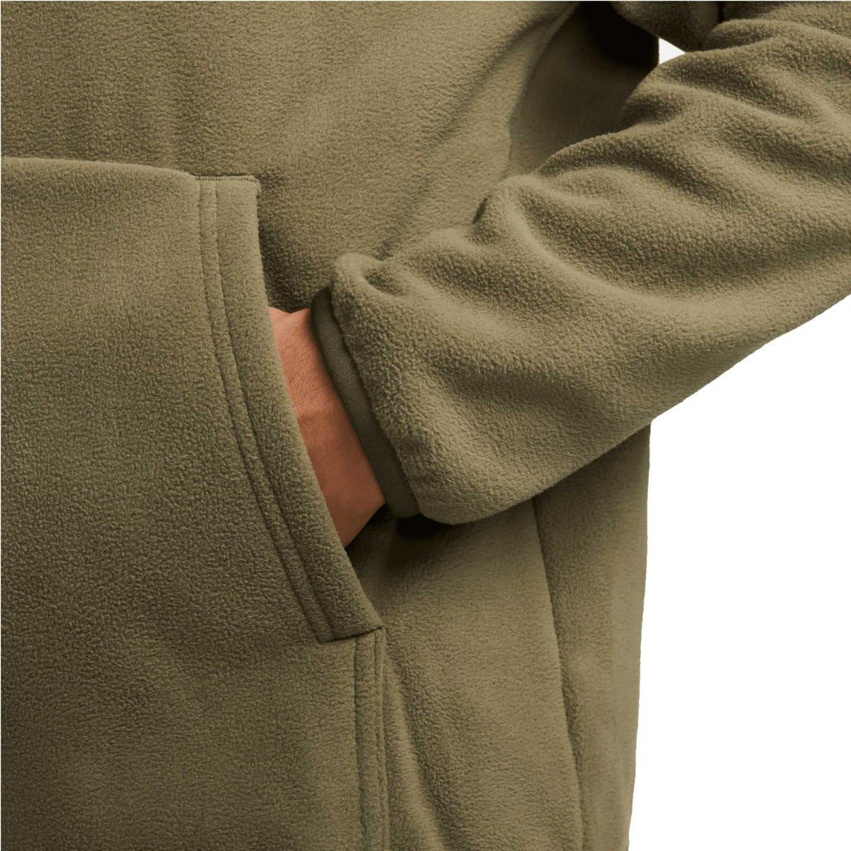 Micro polar fleece fabric is a soft, lightweight material that is brushed for extra warmth. Adjustable bungee and cord-lock at the hem helps you cinch up the fit to fight off the chill. 3-panel scuba hood adds more coverage, plus it’s lined with cool mesh for a bit of airflow. Deep Kangaroo pocket gives you an easy place to stash your things and warm your hands. Thin elastic cuff and hem binding with woven ripstop casings help hold in your heat. A Swoosh appliqué is sewn on the chest for a bold Nike vibe.
