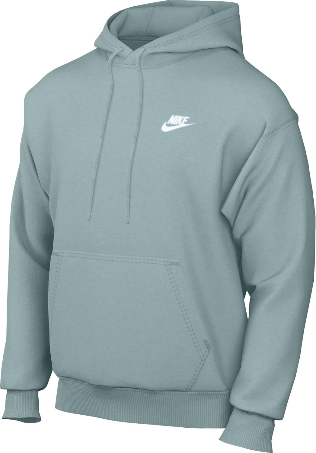 CLASSIC COMFORT. A closet staple, the Nike Sportswear Club Fleece Pullover Hoodie combines classic style with the soft comfort of fleece. Soft Comfort Brushed-back fleece is soft and smooth against the skin. Adjustable Coverage Hood with a drawstring offers adjustable coverage. Product Details Standard fit for a relaxed, easy feel Ribbed hem and cuffs Kangaroo pocket Fabric: Body: 80-82% cotton/18-20% polyester. Hood lining: 100% cotton. Machine wash Imported