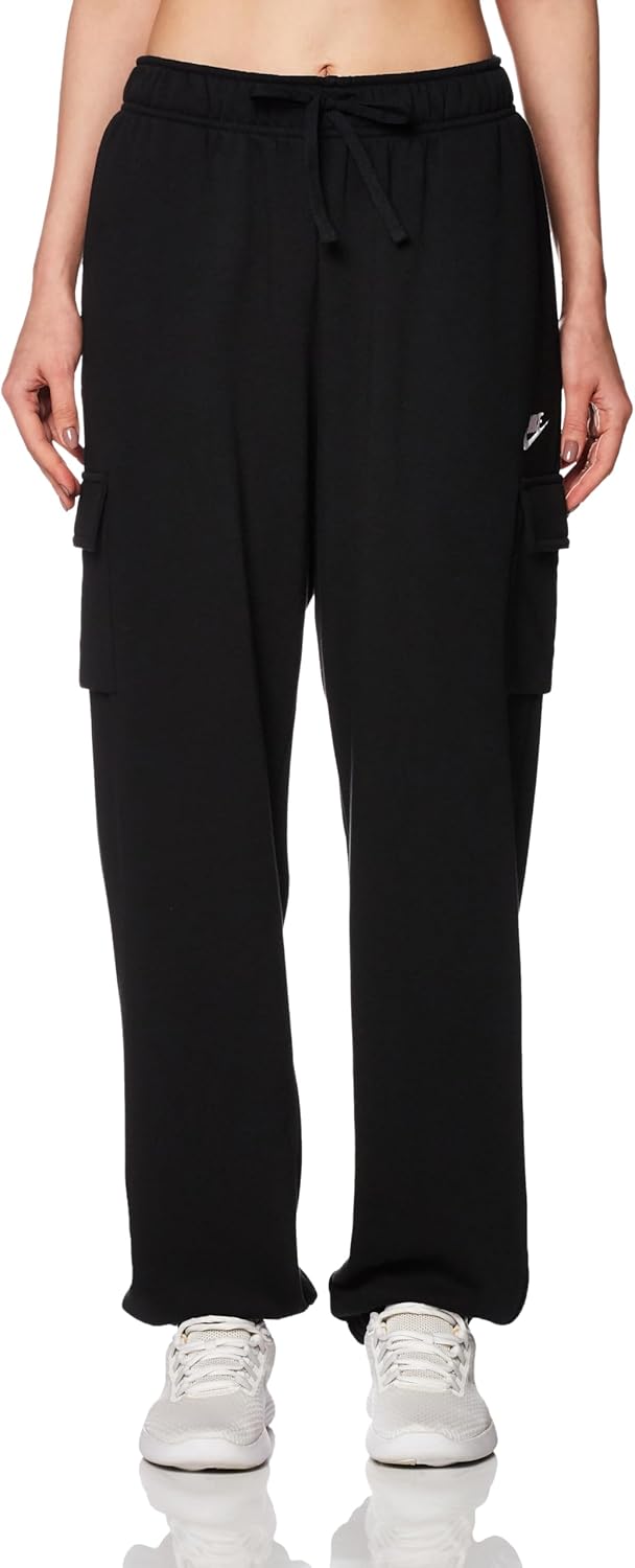 Nike Sportswear Club Fleece Women’s Mid-Rise Oversized Cargo Sweatpants (DQ5196-010, Black/White)