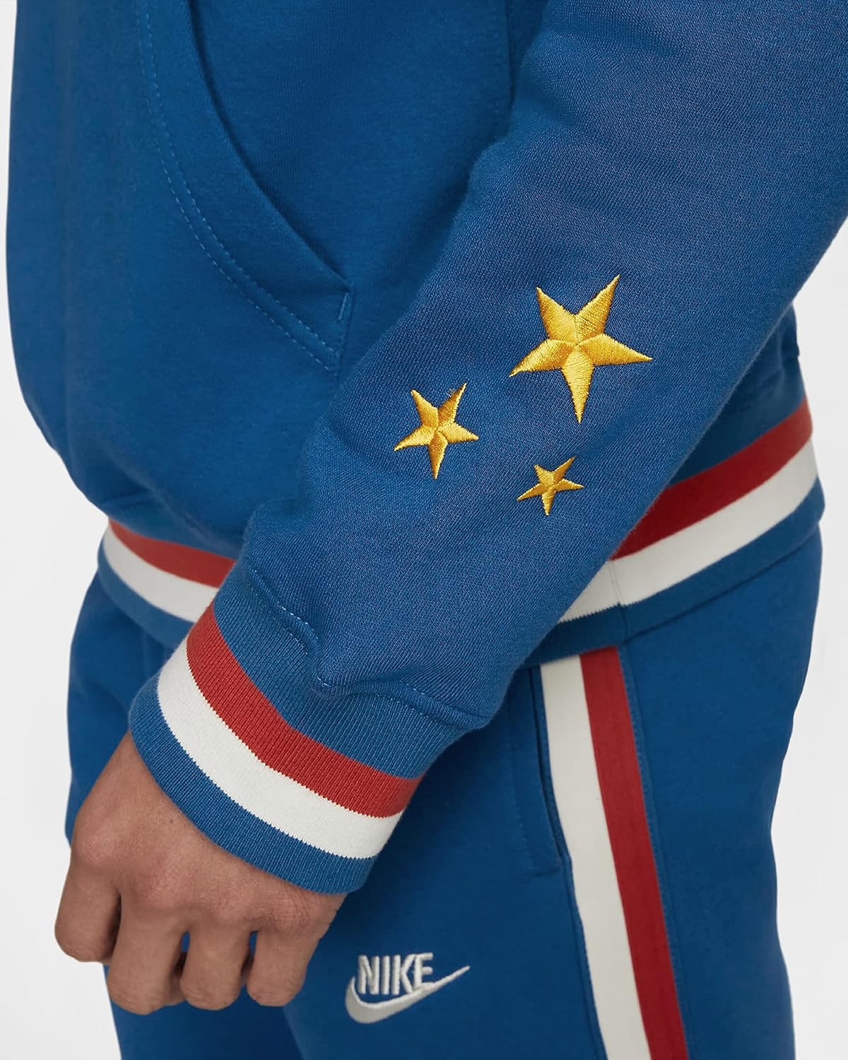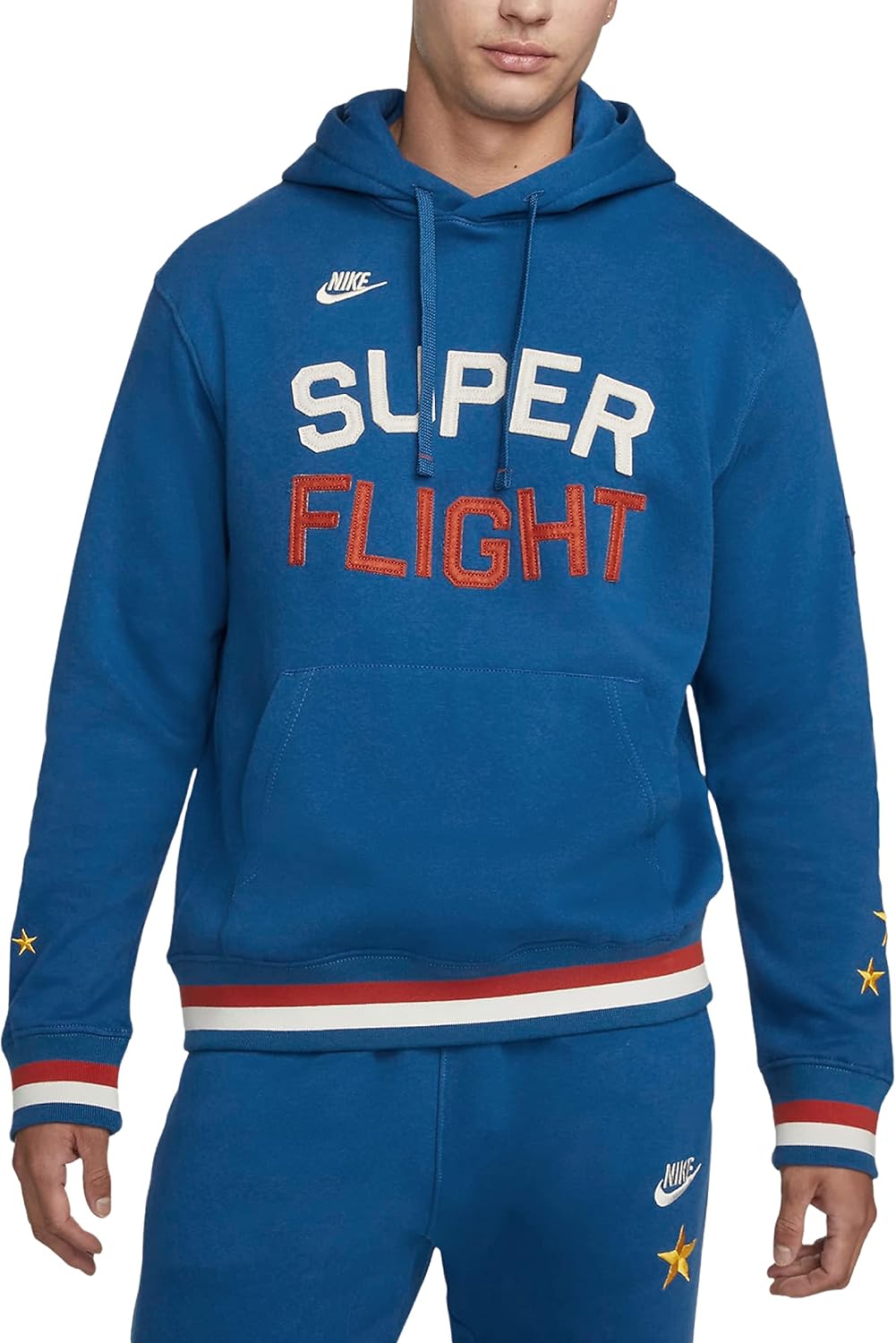 Soft fleece feels comfortable and warm. Ribbed cuffs and hem help keep the hoodie in place while you move. Product Details Standard fit for a relaxed, easy feel Adjustable hood Front pocket Body: 80% cotton/20% polyester. Hood lining: 100% cotton. Machine wash Imported Style: DQ3527-476