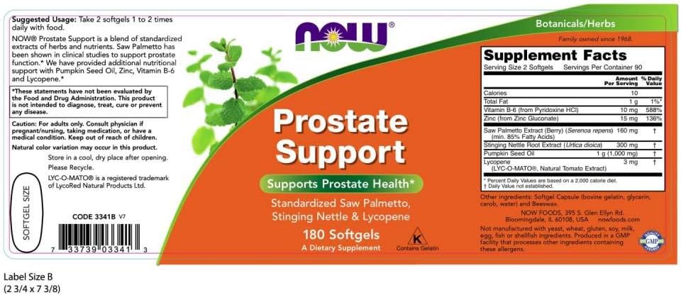 WITH STANDARDIZED SAW PALMETTO, STINGING NETTLE AND LYCOPENE: NOW Prostate Support is a blend of standardized extracts of herbs and nutrients. Additional nutritional support added from pumpkin seed oil, zinc, vitamin B-6, and lycopene.*