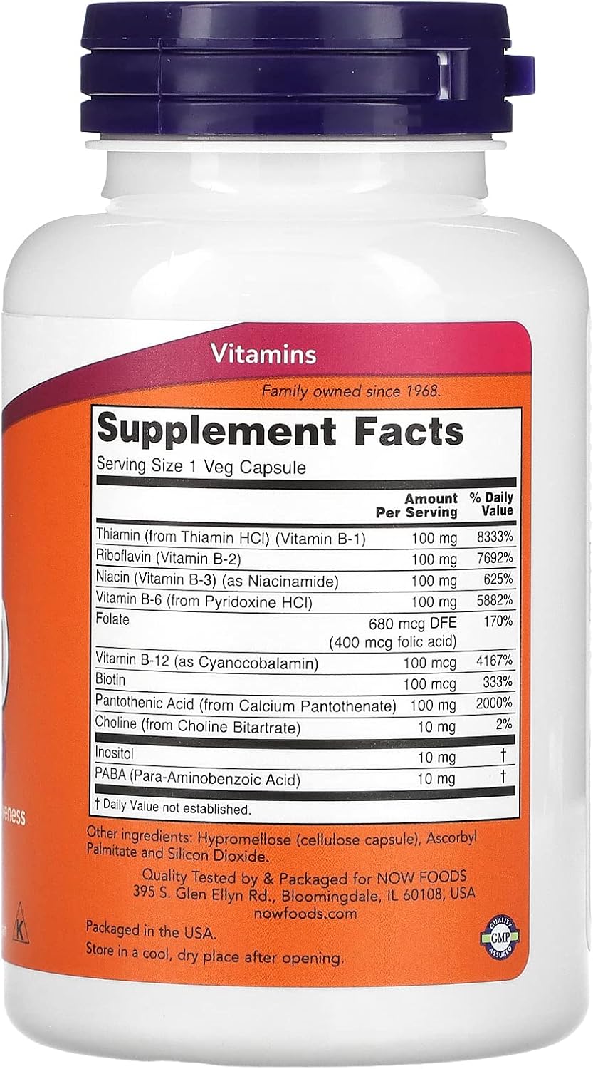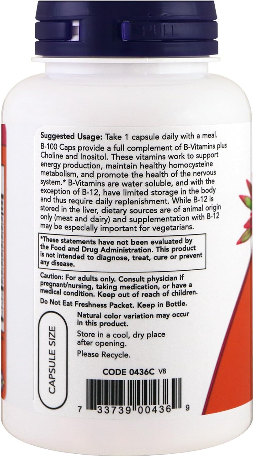 B-COMPLEX FOR MAXIMUM EFFECTIVENESS/VEGAN: B-100 Caps provide a full complement of B-vitamins plus choline and inositol. Also includes 400 mcg folic acid.