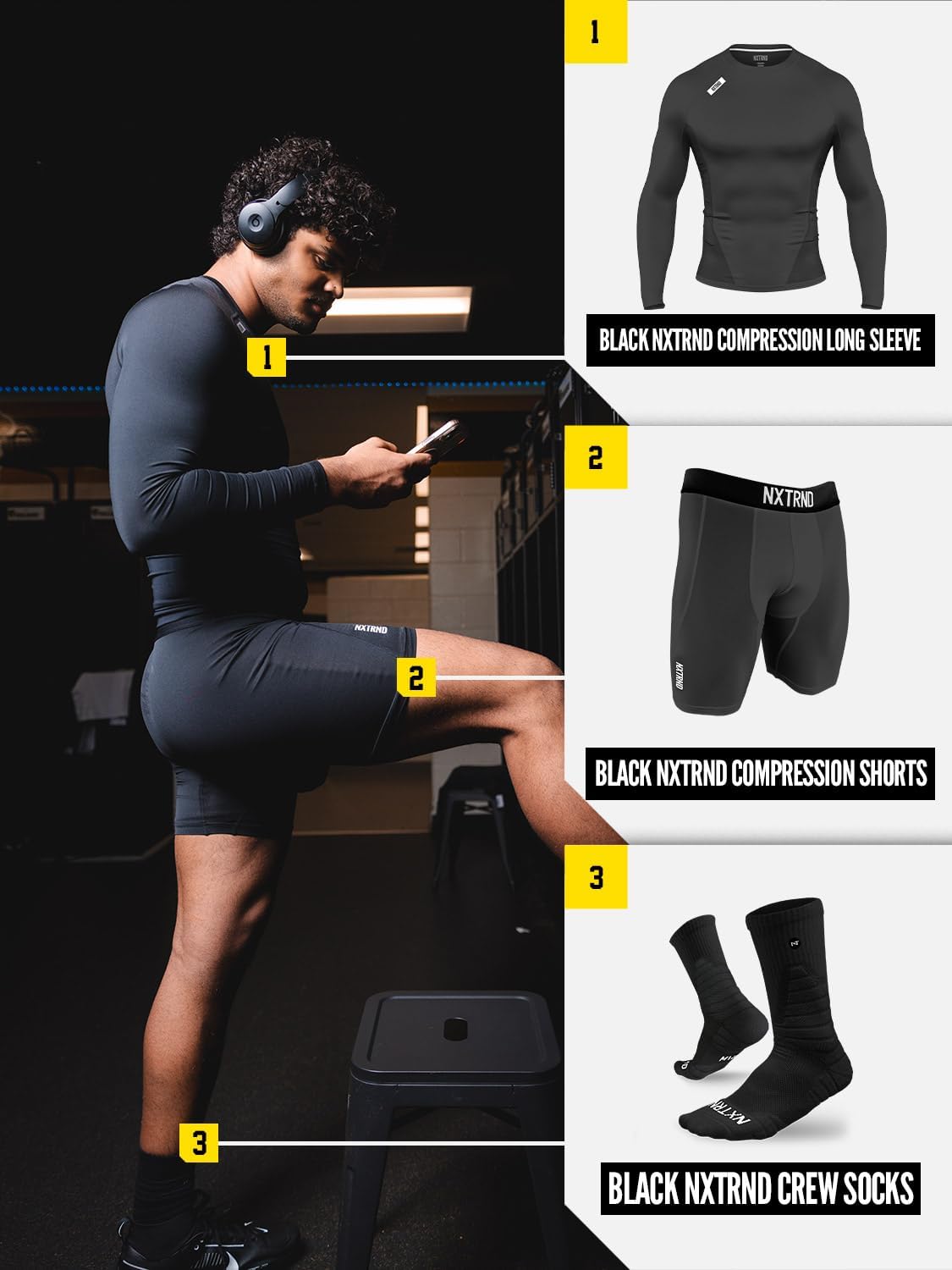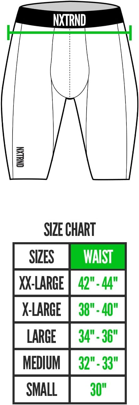 Nxtrnd’s Core Compression line is our signature performance baselayer. Being football focused, we made it extra comfortable by incorporating sweat wicking capabilities and 4-way stretch materials, allowing you to move freely no matter the situation. Our super-light polyester blend fabric delivers a stretchy and comfortable fit without the added weight of cotton. the mesh paneling placed in sweat prone areas allows the mens tights to stay dry no matter the intensity of your training. Legging material wicks sweat & dries really fast. Ergonomic design keeps seams away from high abrasion areas & increases durability. Tight fit makes for the perfect football leggings and football compression shorts. Ultra-tight, second-skin fit. 85% Polyester/15% Spandex.