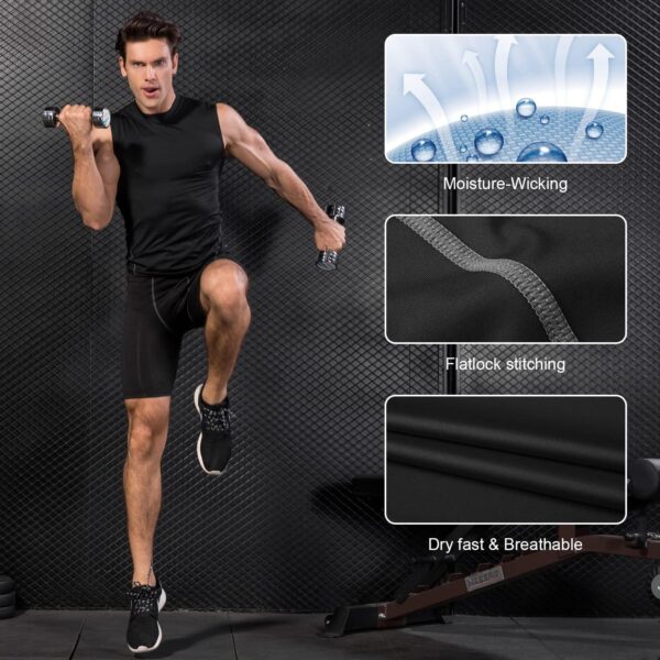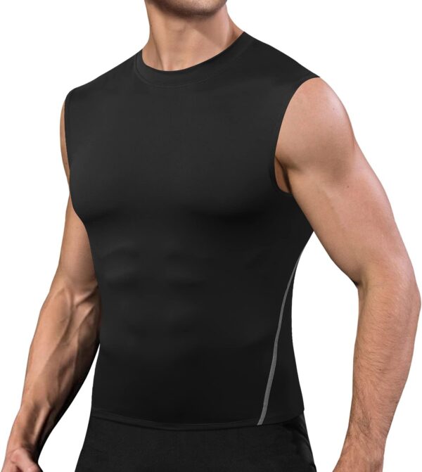 Odoland 5 Pack Men’s Compression Sleeveless Shirts, Dry Fit Athletic Base Layer Tank Top, Sports Running Gym Workout Shirts